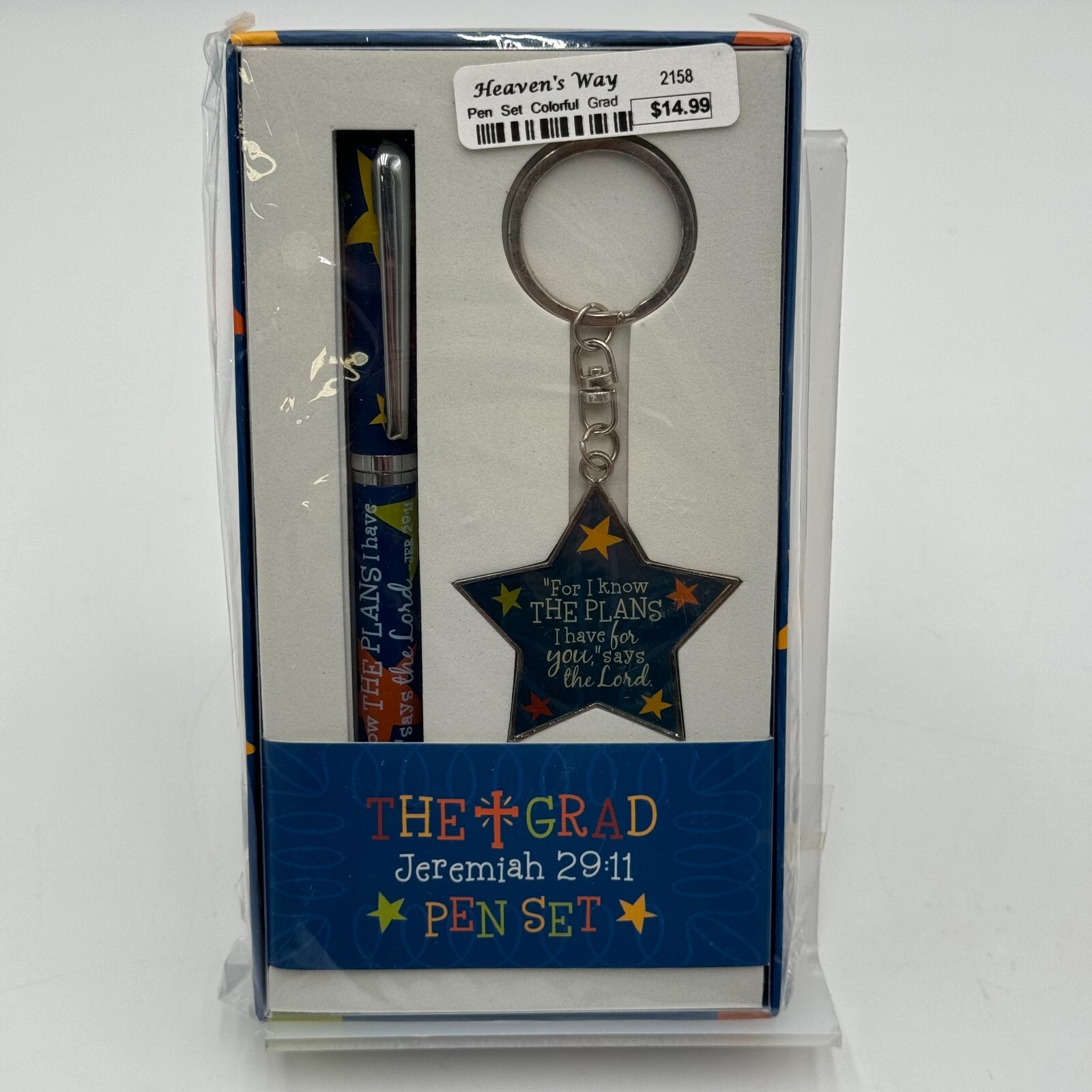 This graduation gift set includes three fancy pens and keychains, perfect for any student who has worked hard to achieve their goals.