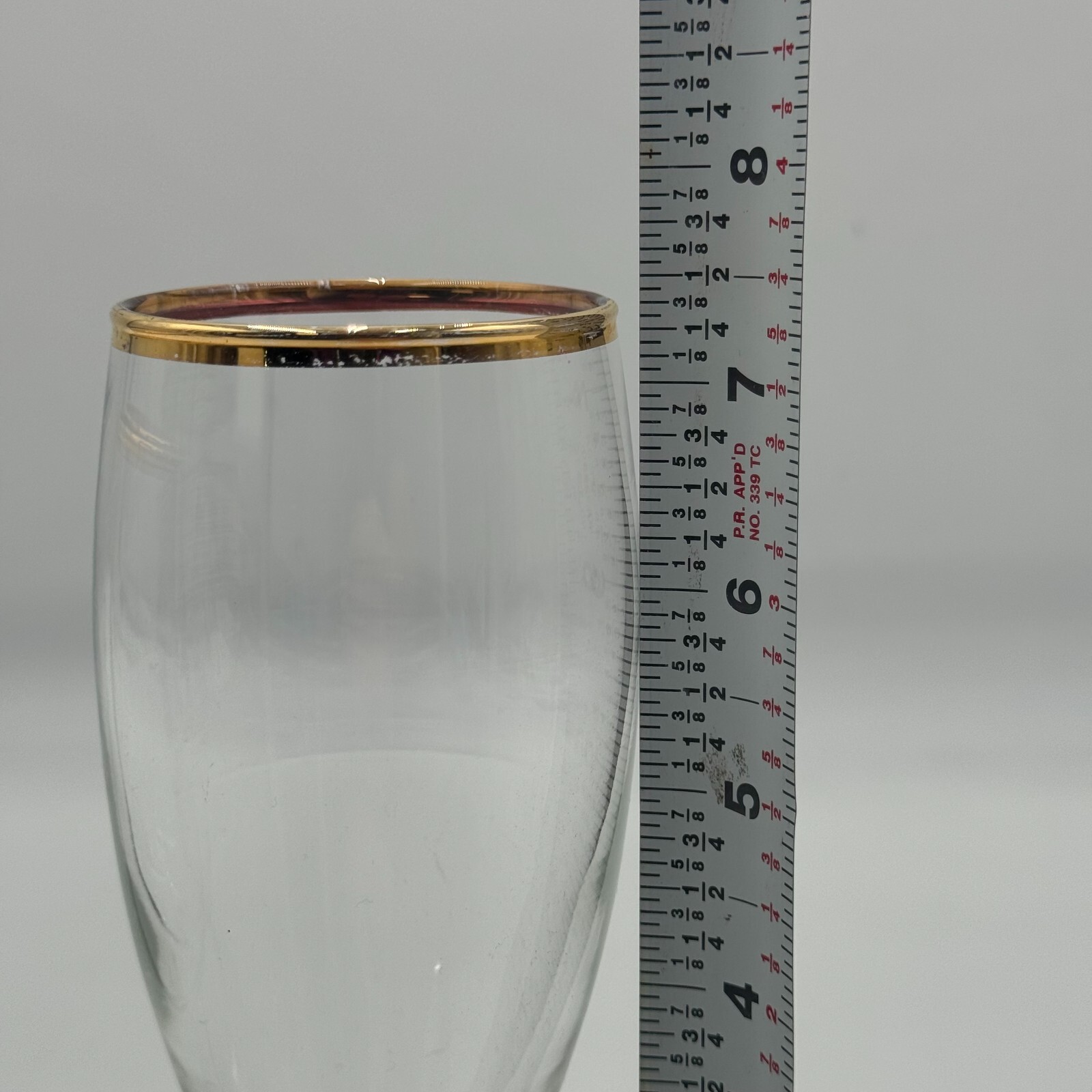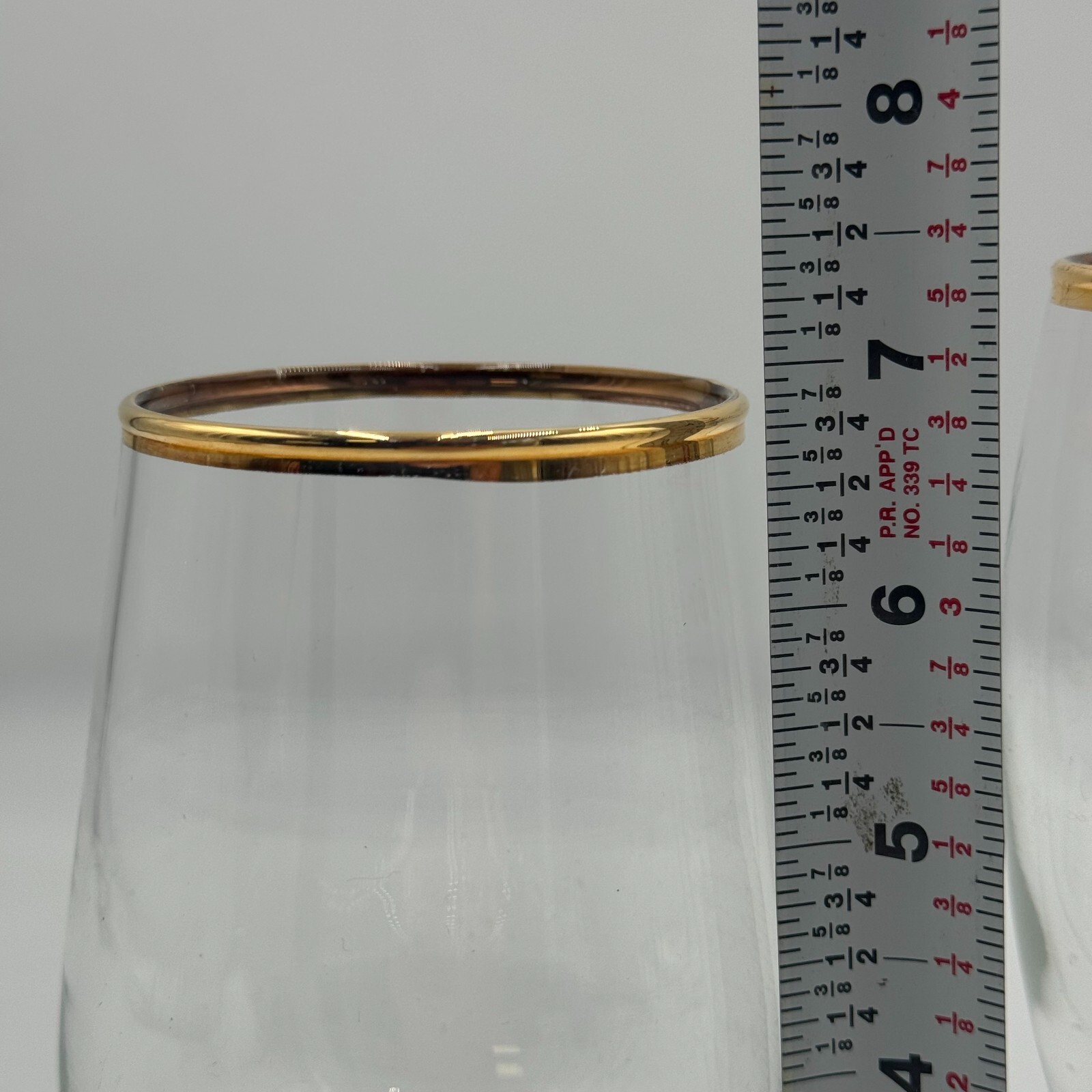 Crafted in France, these clear art glass cocktail glasses are perfect for enjoying your favorite wine or cocktail. The set includes a 7 and 7.5-inch glass, both adorned with a stunning gold rim design.