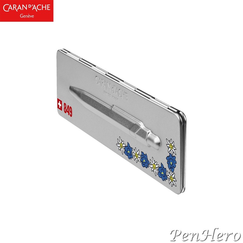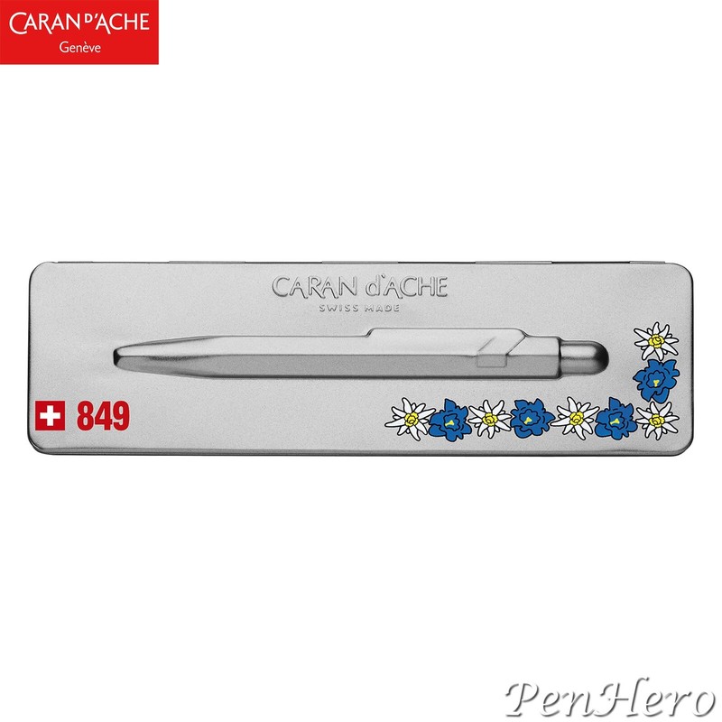 Immerse yourself in the Swiss culture with the 849 Edelweiss ballpoint pen. Matt black coating decorated with the famous alpine flowers.