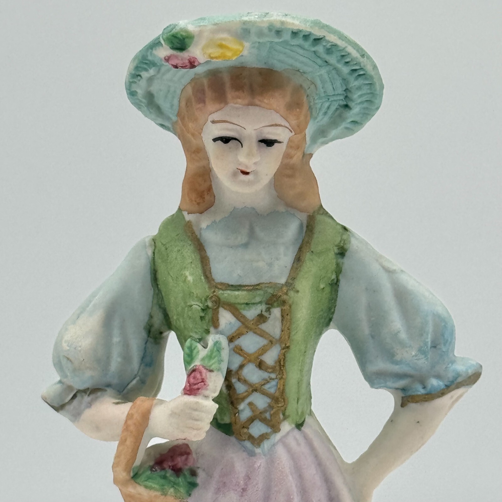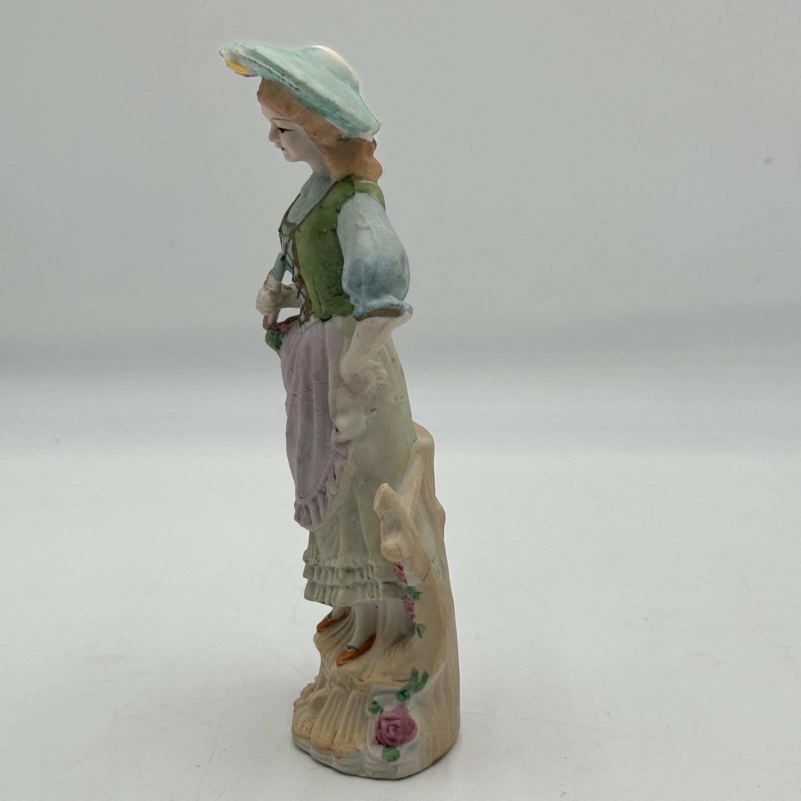 This vintage figurine from Japan features a beautiful woman with intricate hand-painted roses on porcelain. The piece is perfect for collectors of decorative items, especially those interested in romance and love. The multicolor design is eye-catching and will make a great addition to any collection. The figurine is made by Andrea and is a must-have for all occasions.