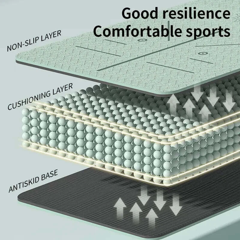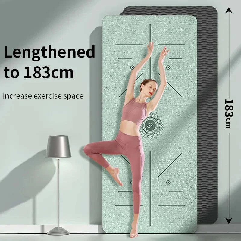 Elevate your yoga practice with our Premium Non-Slip Yoga Mat, designed to support and guide beginners while offering durability and comfort for experienced yogis. With its integrated asana guide, this mat helps ensure correct postures, reducing the risk of injury and enhancing your practice. The thick, cushioned design protects your joints and provides a stable surface, making it ideal for both beginners and seasoned practitioners. The stripe pattern adds extra grip, preventing slips and maintaining your focus during intense sessions.