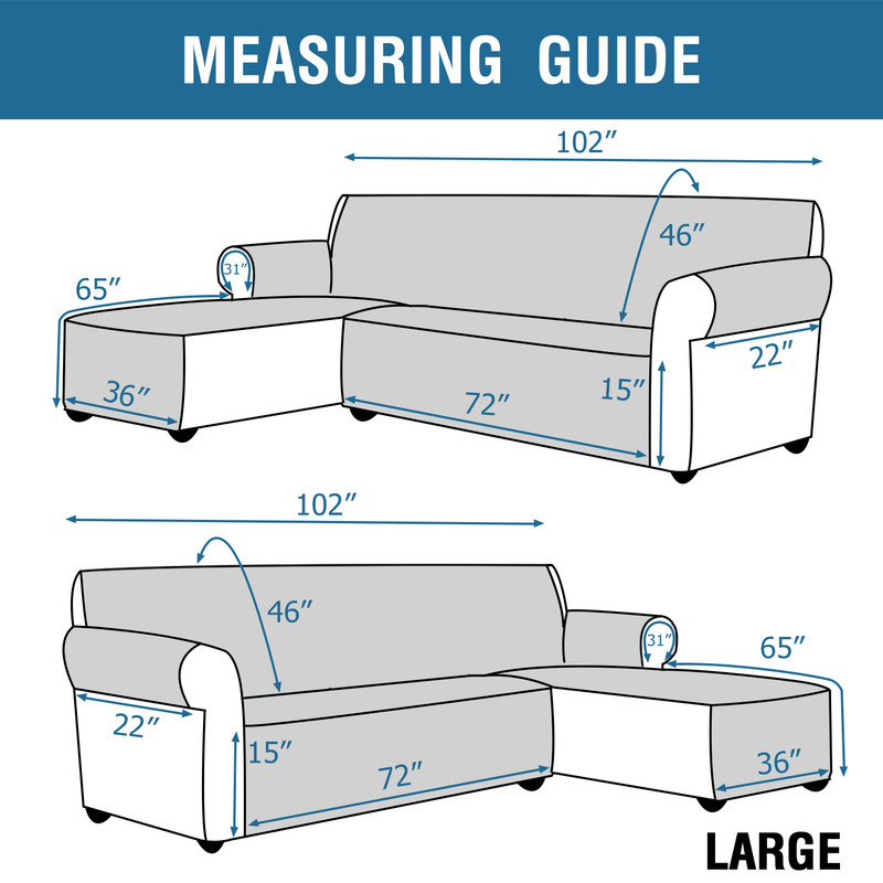 【UPGRADED&PREMIUM SECTIONAL COUCH COVERS】Our chaise slipcover nade of high-quality double-sided waterproof fleece cloth,thick microfiber gives you a soft touch.aslo super soft,wrinkle-resistant polyester fabric,Thanks to the new technology, the double imitation cloth on the surface makes the sofa covers twice as waterproof as the usual ones. 【Reversible Design Cover】This sectional couch cover is specially designed for sectional/L shaped sofas with left chaise or right chaise. 3 sizes for choose: M,Large and XL Large. Please measure your sofa before buy. A reversible design, two sides are available, elegant color, perfect to frequently update your sofa’s look at no extra cost. Don’t worry about left chaise or right chaise of your sofa. 【INNOVATIVE DESIGN】L shaped couch cover optional on both sides that Don’t worry about left chaise or right chaise of your sofa.Suitable for various decoration styles and fit 4 seasons.Stretchy polyester fabric with simple patterns makes this slipcover look more colorful and attractive in any room decor. 【COMPREHENTIVE PROTECTION&NON SLIP DESIGN】The waterproof couch cover design with 360° all-cover protect and strong elastic band,aslo enclose 10pcs non-slip sticker sthat you can enjoy a slip-resistant and comfortable seat every time.Meantime it can protect your furniture the the back, arms and seat of your sofa from daily stains, tear, wear and scratch,animal scratches, animal hair for your chair, protect homes with children, dogs and cats. 【FRESHEN YOUR HOME DECOR&EASY CARE】Diamond-shaped quilting design slipcovers for sofas add a vintage allusion to your home decor.Stylish and beautiful design, giving you a different look for your whole home decoration style, enhance the feeling of luxury. (⭐WASHING TIPS:Machine washable in cold water. Wash separately at gentle cycle. Using mild laundry detergent. Do not bleach and iron). Features:
