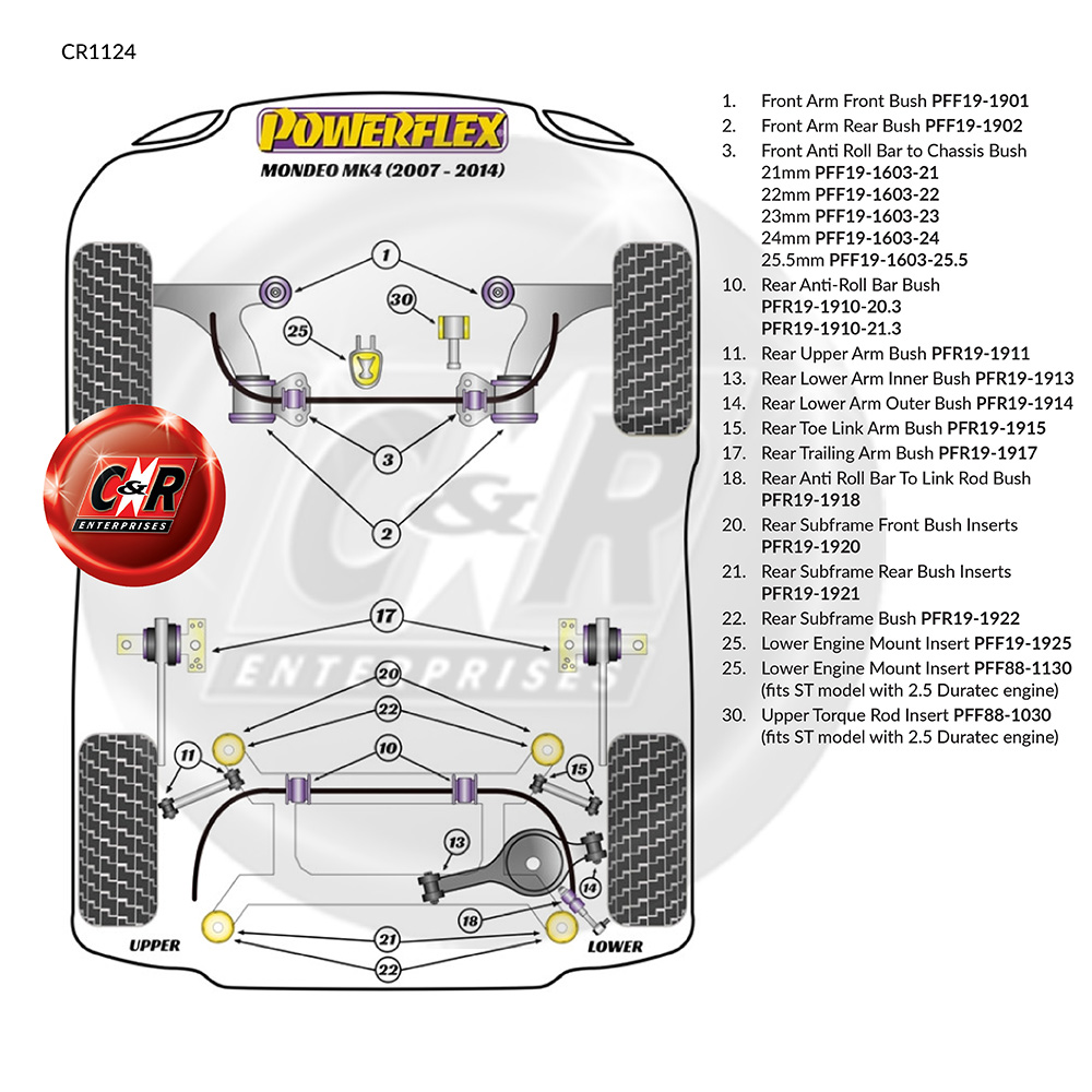 Powerflex Road Oberer Drehmomentstangeneinsatz für: Ford Mondeo MK4 (2007 - 2014) PFF88-1030