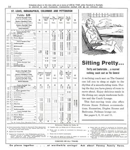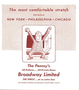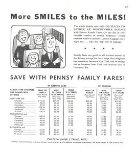 There is a schedule of coach and Pullman fares, a listing of family fares, a great 2-page centerpage map of the PARR system, and some period railroad advertising. There are maps showing train station locations in New York, Chicago, Washington and Philadelphia.