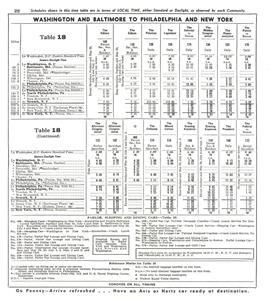 Listings are for the following groups of cities: (a) Chicago to Baltimore, Washington, Philadelphia and New York; (b) St. Louis, Indianapolis, Cincinnati and Eastern Cities; (c) Nashville, Louisville, Cincinnati, Columbus and Eastern Cities; (d) Cleveland, Youngstown and Eastern Cities; (e) Chicago and Pittsburgh; (f) New York and Roanoke; (g) St. Louis, Indianapolis, Columbus and Pittsburgh; (h) Chicago, Indianapolis and Louisville; (i) Chicago, Dayton and Columbus; (j) Chicago, Richmond, Cincinnati and Norfolk; (k) Pittsburgh and Baltimore, Washington, Philadelphia and New York; (l) Washington and Baltimore to Philadelphia and New York; (m) Washington, Baltimore, Philadelphia and Boston to Montreal; (n) Philadelphia and New York; (o) New Jersey Shore Services between Philadelphia and Ocean City, Wildwood, Cape May; (p) New York and Point Pleasant Beach; and (q) Buffalo, Erie, Washington, Philadelphia and New York.