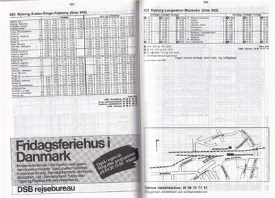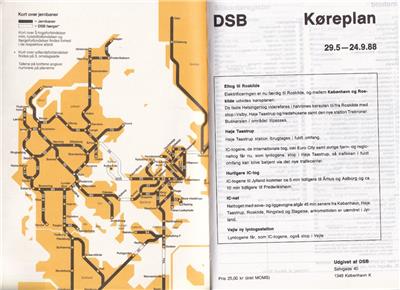 For auction is a BIG timetable book from the Danish State Railways (Danske Statsbaner, or DSB); it is for the period May 29 - August 24, 1988 and lists schedules for all trains operated by the DSB, national and international.