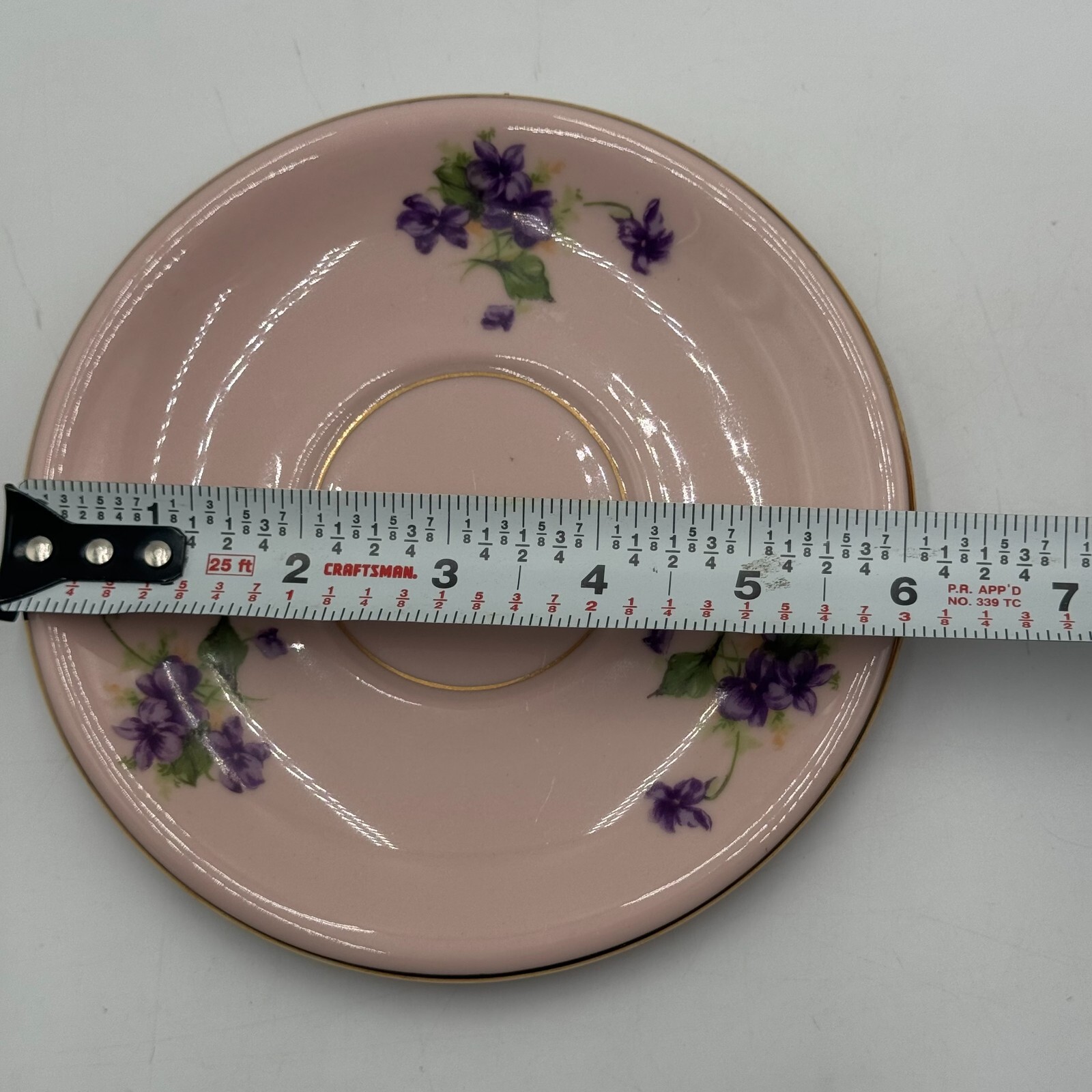 This beautiful Leneige Fine China plate is a rare find with its vintage design and unique violet floral pattern.