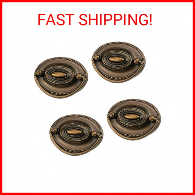 Quluxe 4 Pcs Furniture Dresser Pull Antique Brass Bail Drawer Pull Oval Drop Swing Handles Cabinet Knob Hardware 2.32" Hole Distance, 3.14"x2.2"
