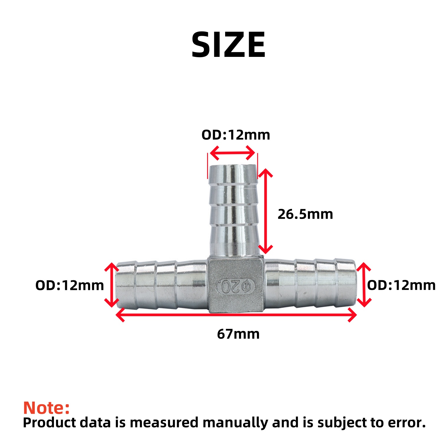 Size: 12 mm Barb x 12 mm Barb x 12 mm Barb