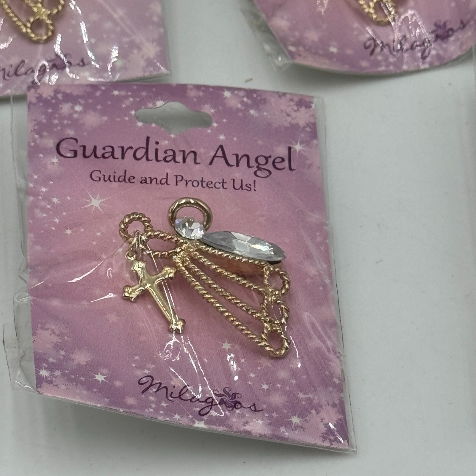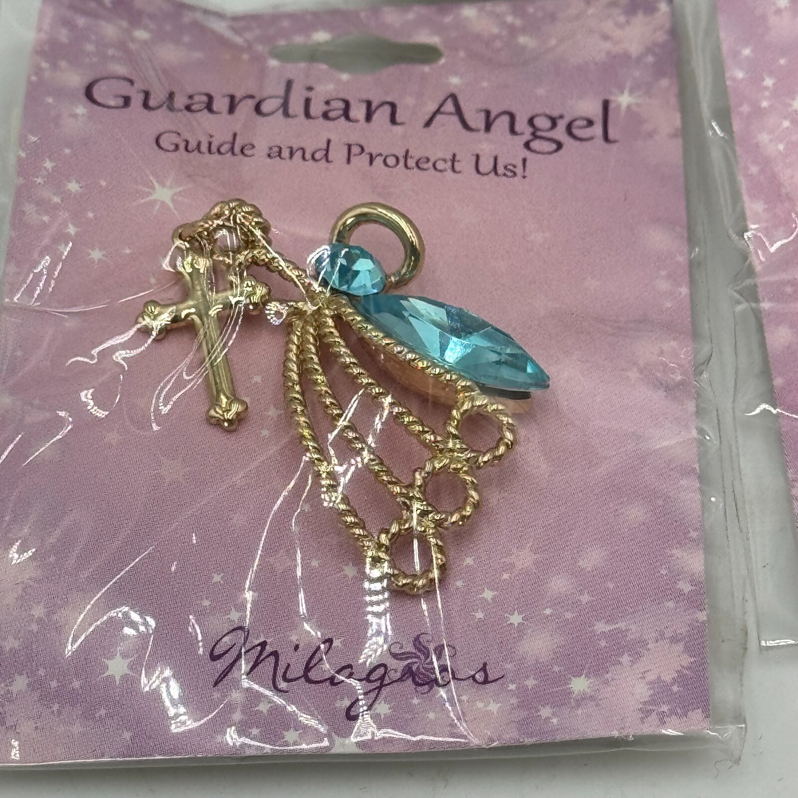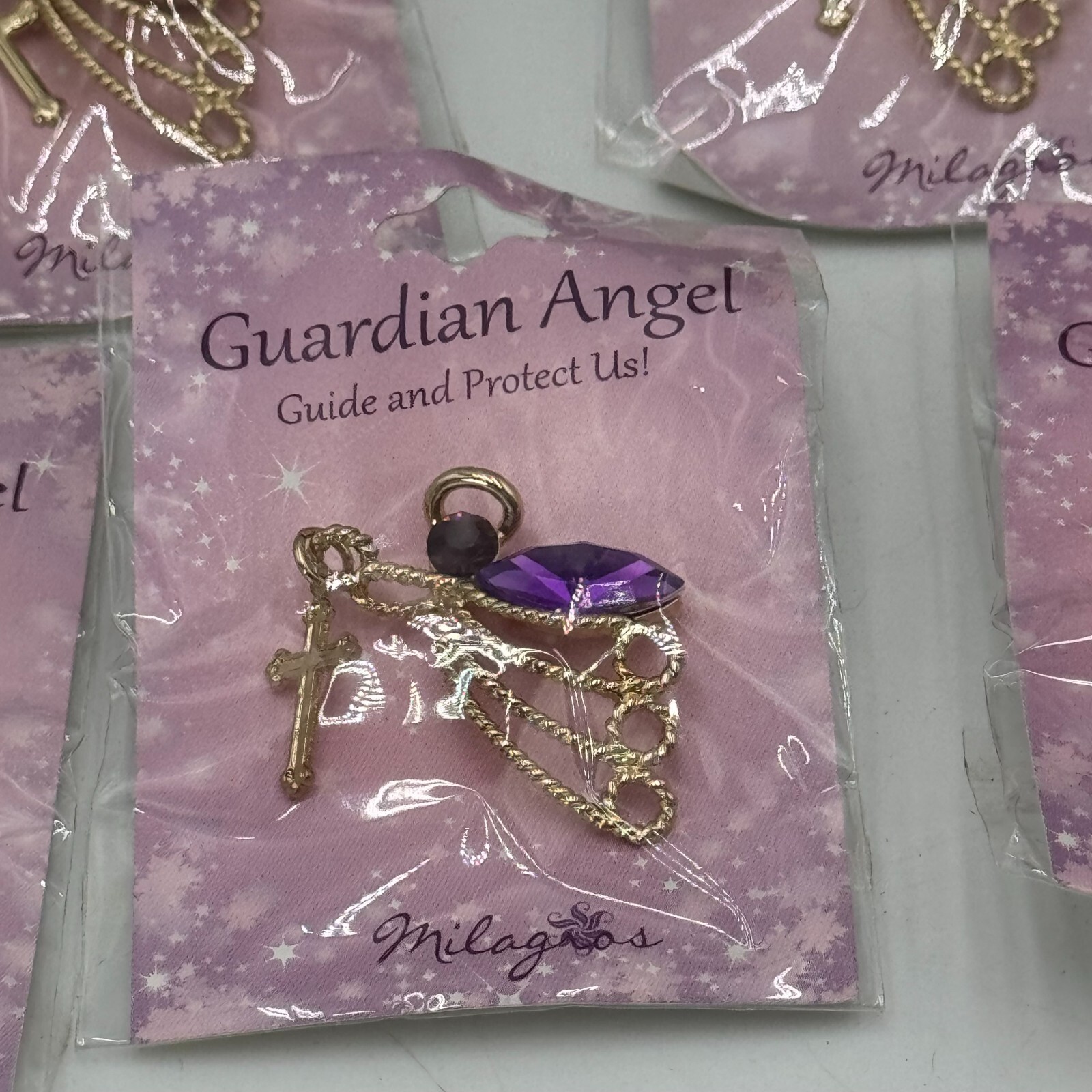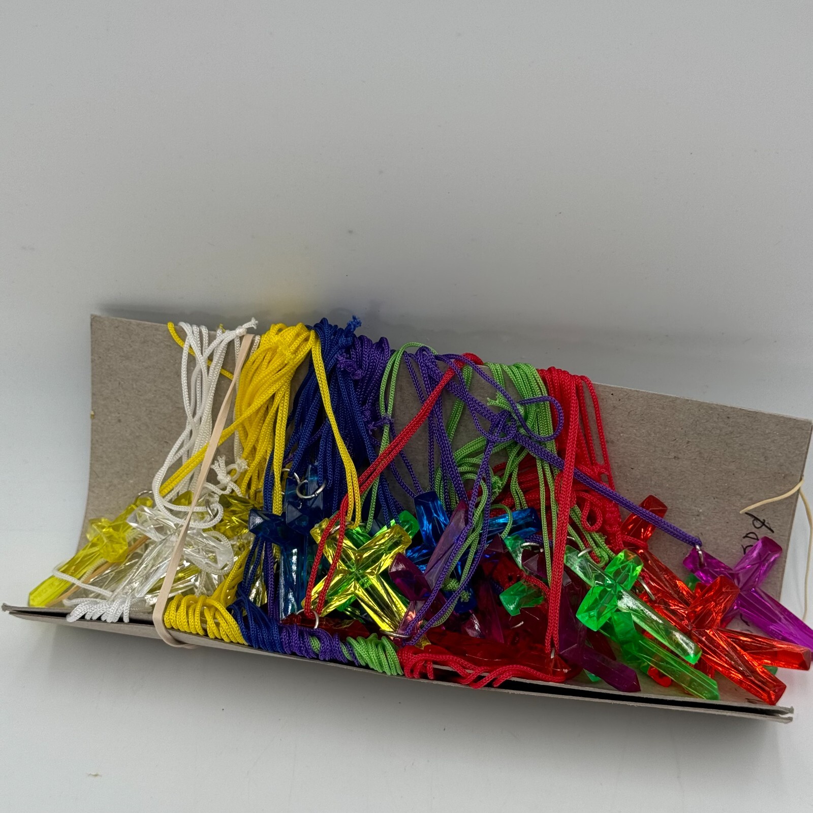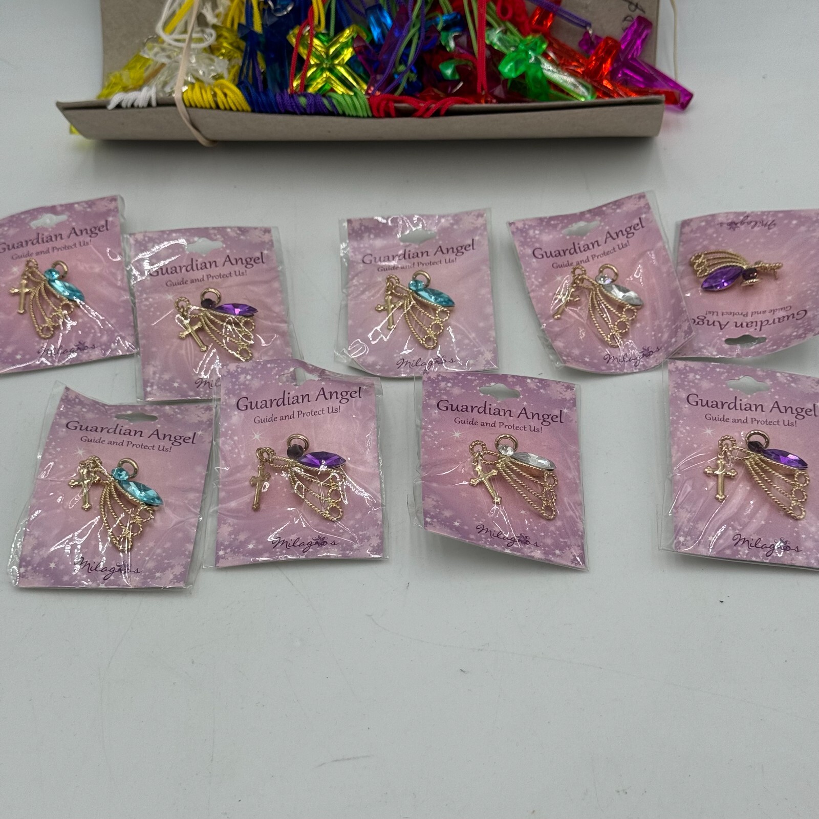 This huge lot of Christian kids jewelry features colored cross necklaces and angel crystal pins.