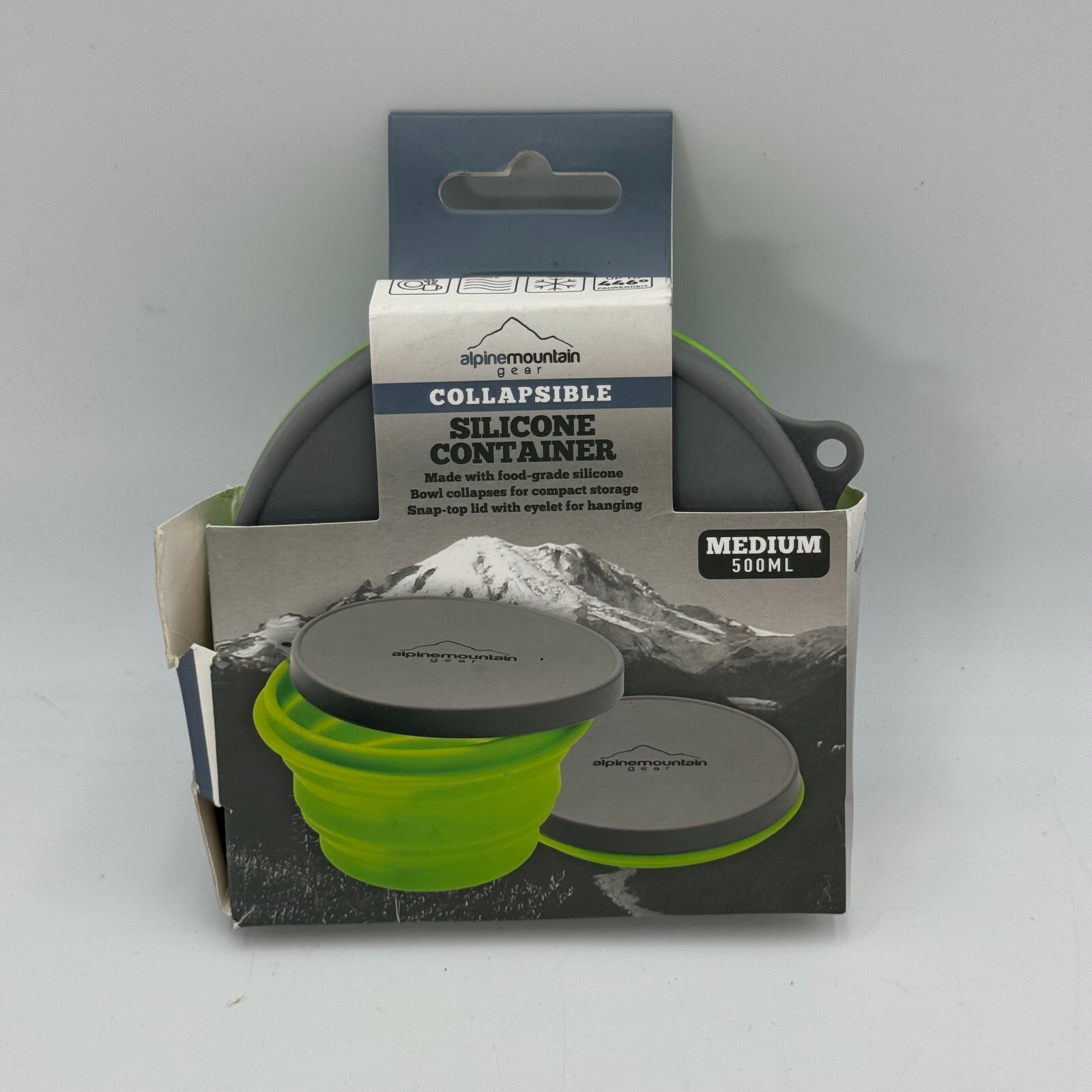 This Alpine Mountain Collapsible Silicone Storage Container with Lid is perfect for camping and other outdoor activities.