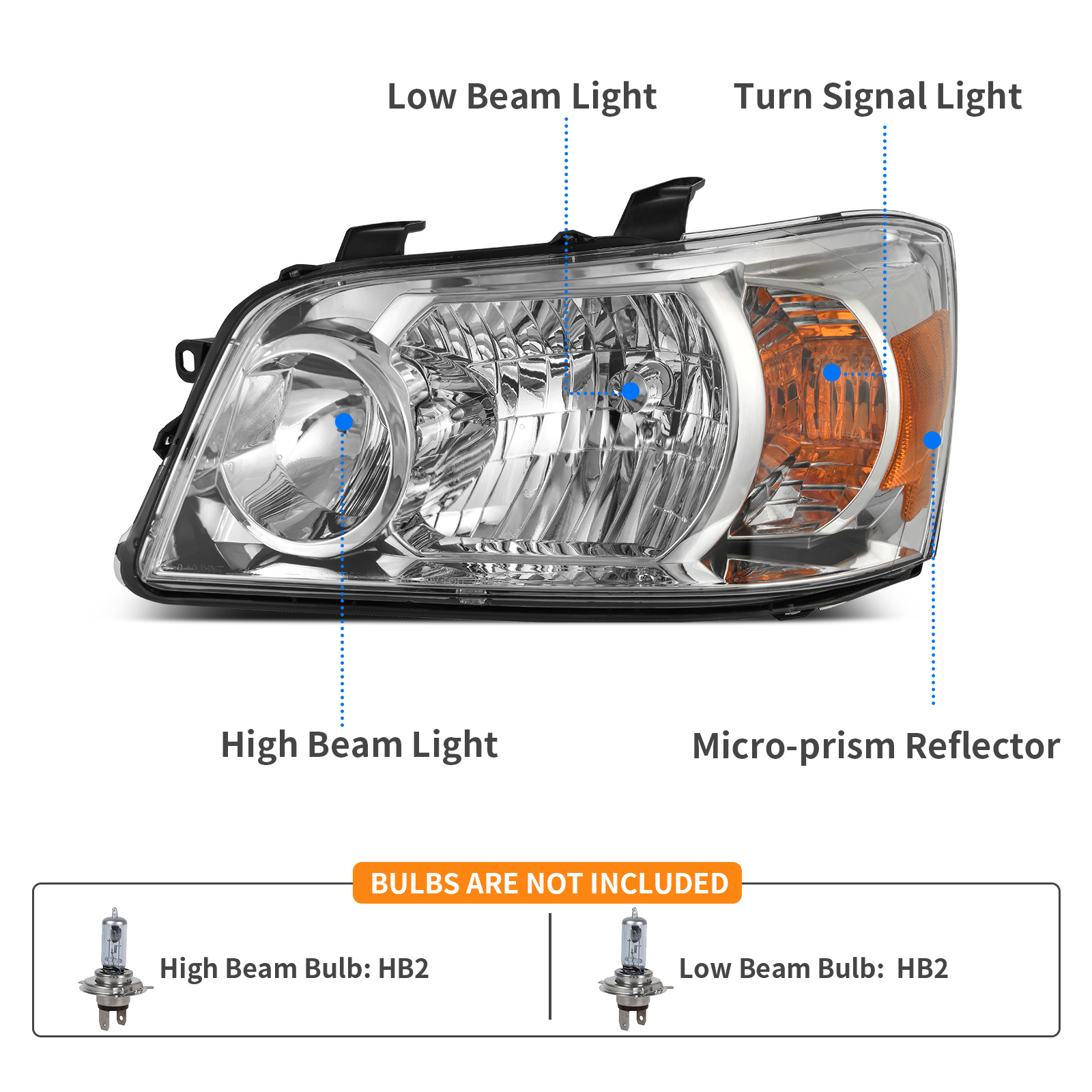 Low Beam Bulb: HB2 (Bulbs not included)
