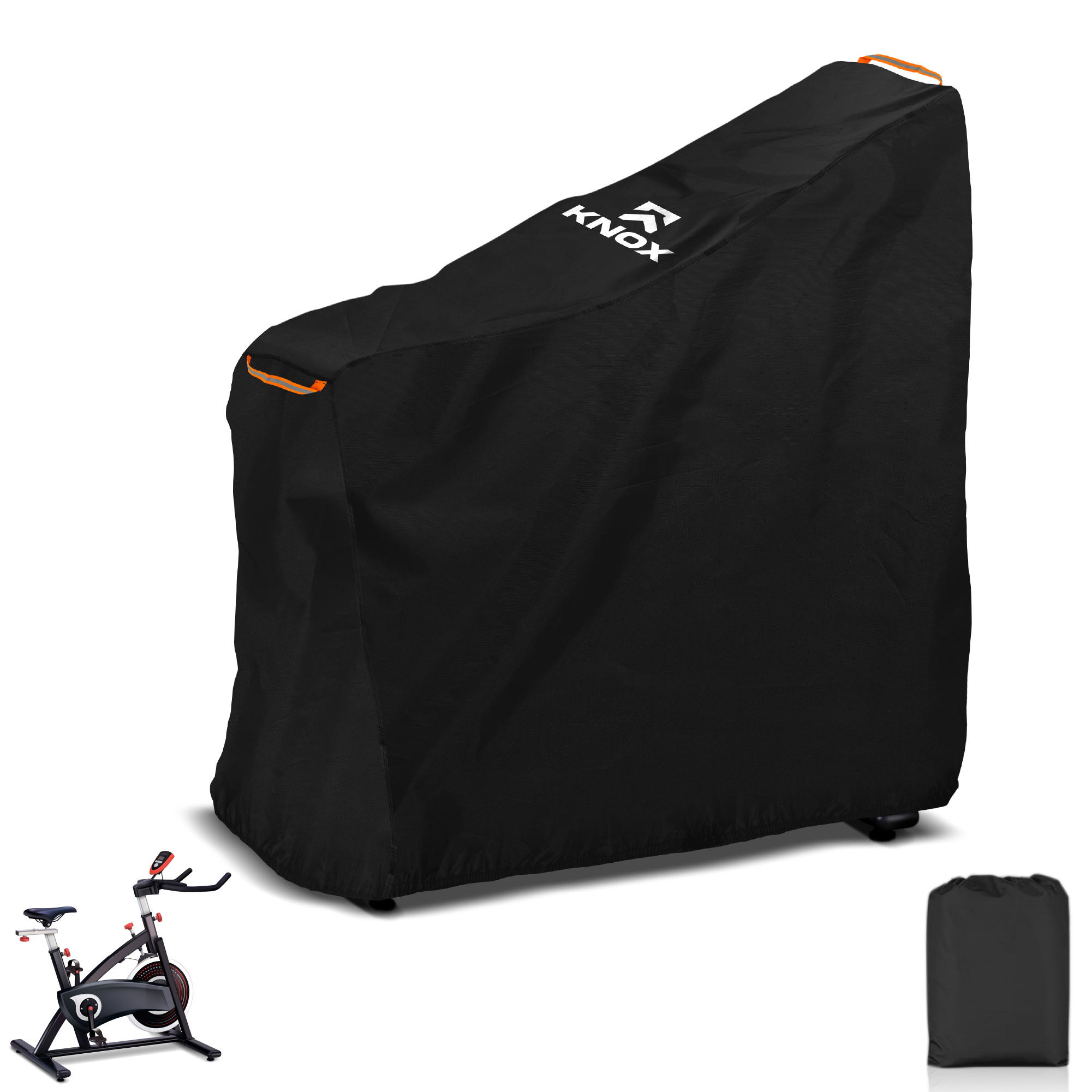 - [USER-FRIENDLY & SECURE DESIGN] - KNOX stationary bike covers feature a durable double-stitched elastic bottom hem for a secure and snug fit. For added convenience, we've designed these lightweight outdoor gym bike covers with two reflective handles—one on the front and one on the back. This makes it easy to see where to take hold of the cover and effortlessly slip it off at night time when there's limited visibility. Perfect for those seeking reliable stationary exercise bike accessories.