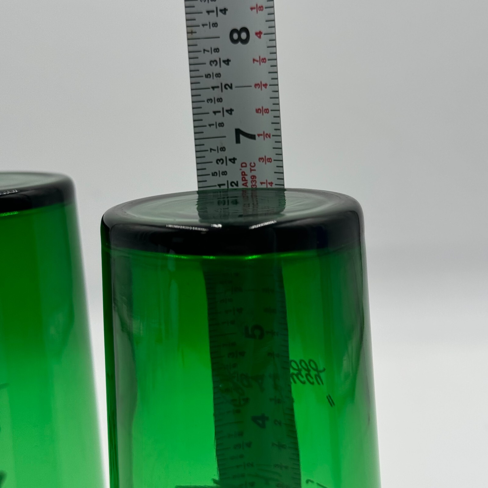 The glasses feature a unique pressed glass production style and are hand-blown for a decorative touch. The green color adds a pop of color to any occasion, and the round shape is perfect for holding your favorite beverage.
