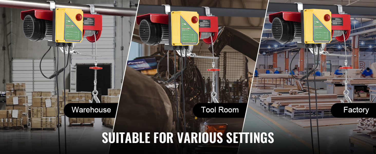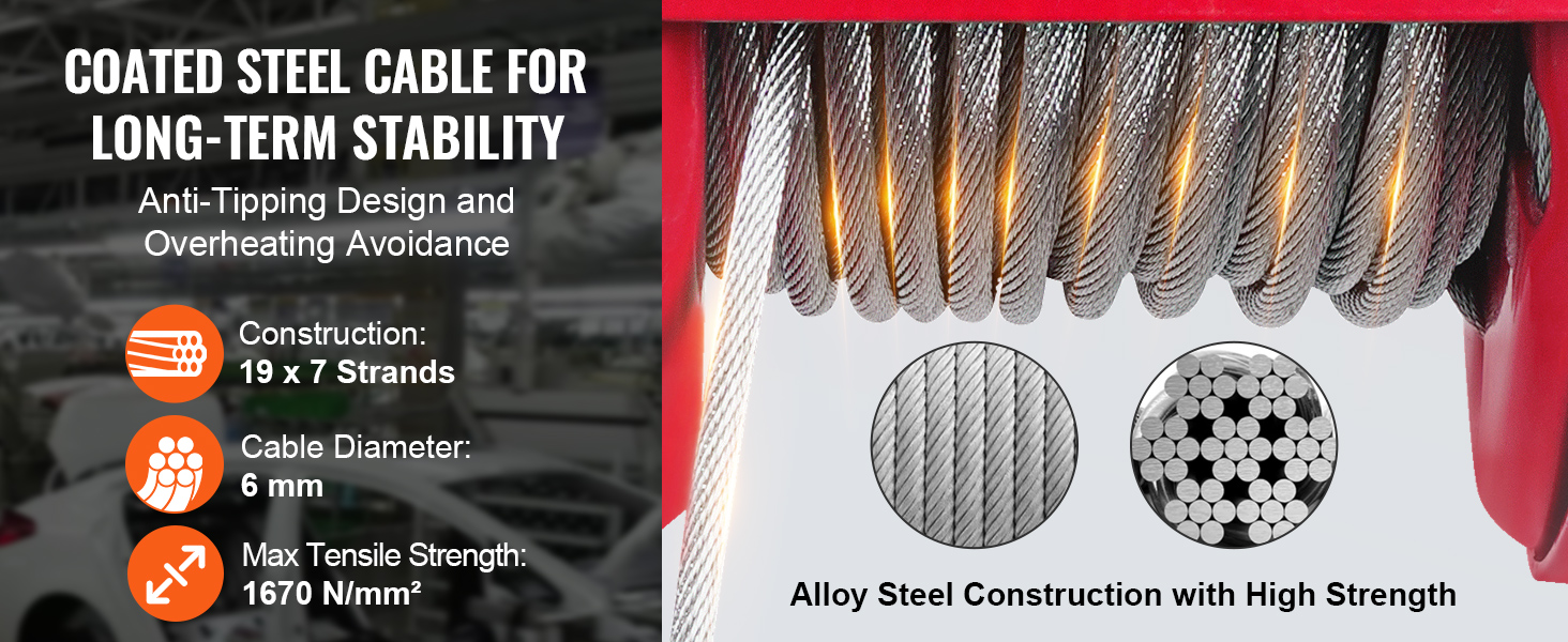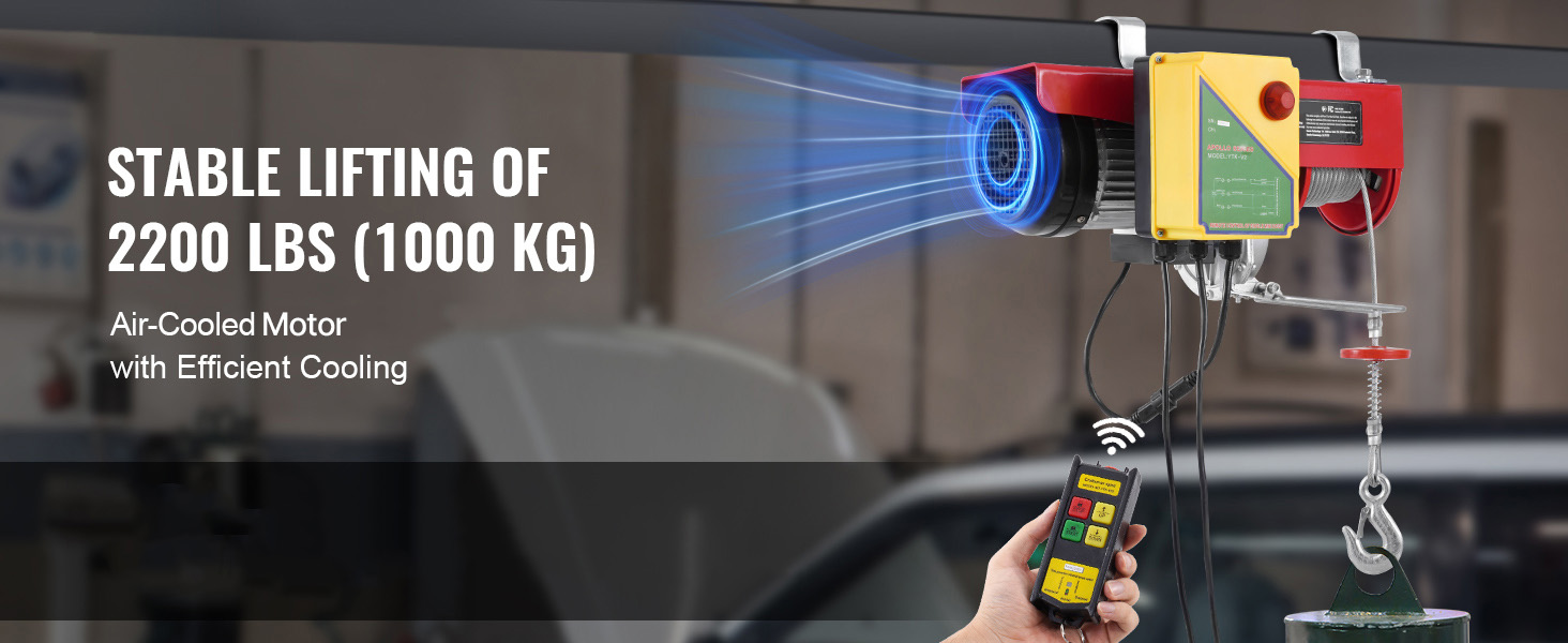 This electric hoist features a durable air-cooled copper motor, designed to ensure smooth and efficient lifting operations. The integrated cooling system, paired with a built-in fan, helps to regulate temperature and reduce the risk of overheating, allowing for extended periods of uninterrupted use.