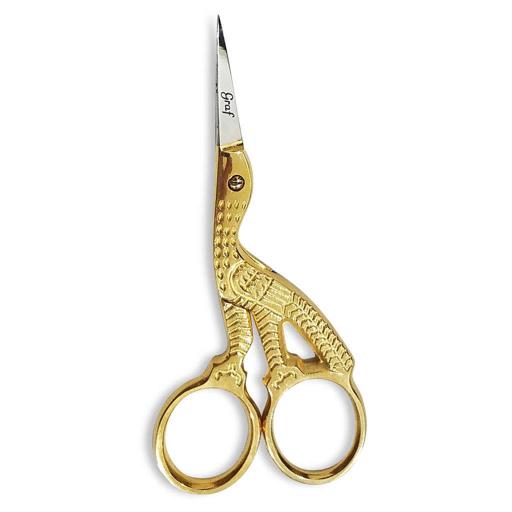 Graf 3.5" Dressmaker's Tailor's Stainless Steel Gold Stork Bird Embroidery Scissors