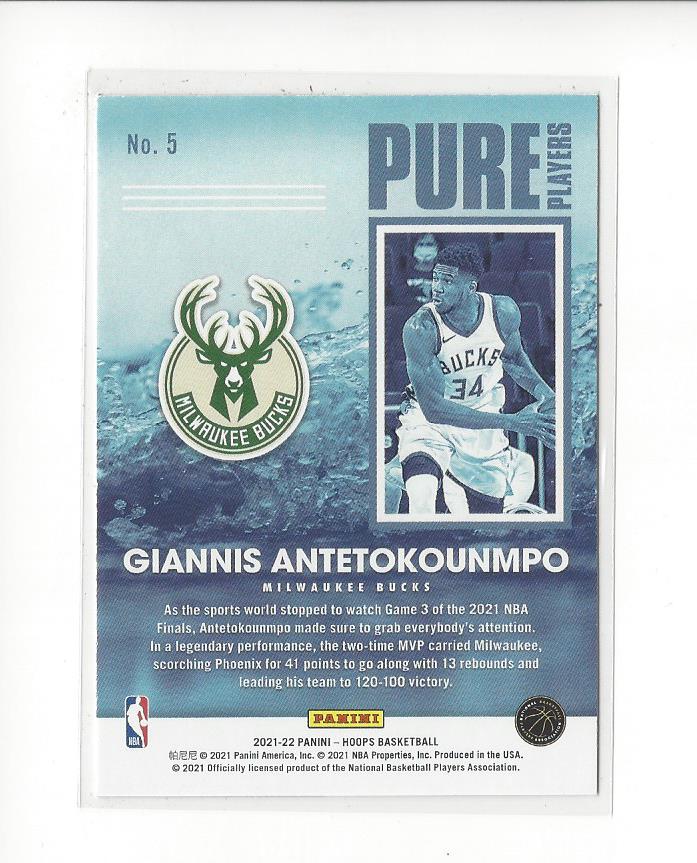 2021-22 Hoops Pure Players Winter #5 Giannis Antetokounmpo Bucks