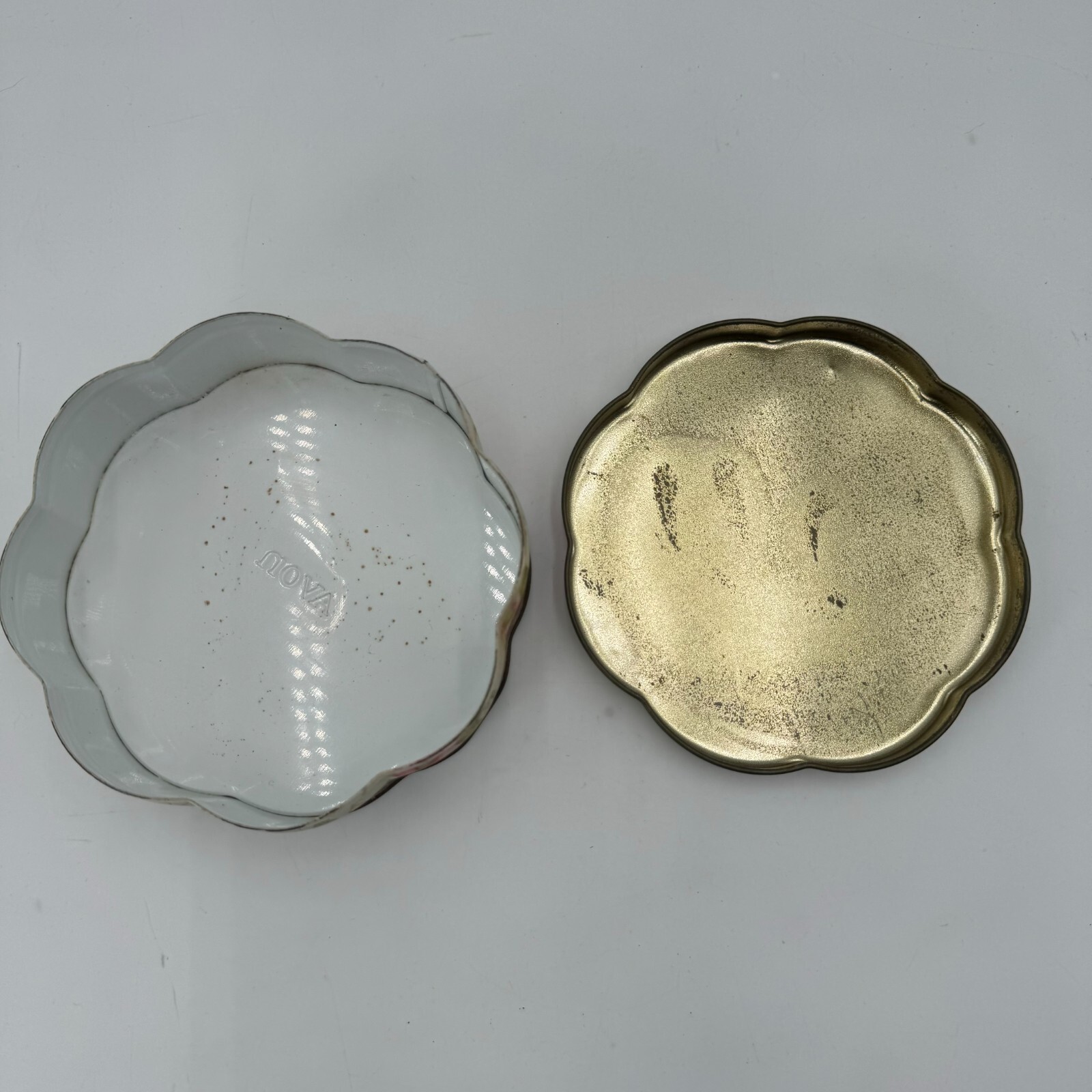 This Avon Tin Talcum Powder Puff with Scalloped Edges and Tender Blossoms is a must-have for collectors and enthusiasts of vintage talcum and bath powder advertising.