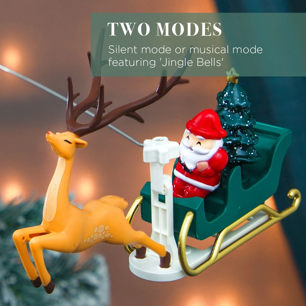 Featuring Santa and his reindeer flying gracefully around your tree, this enchanting decoration delights all ages.