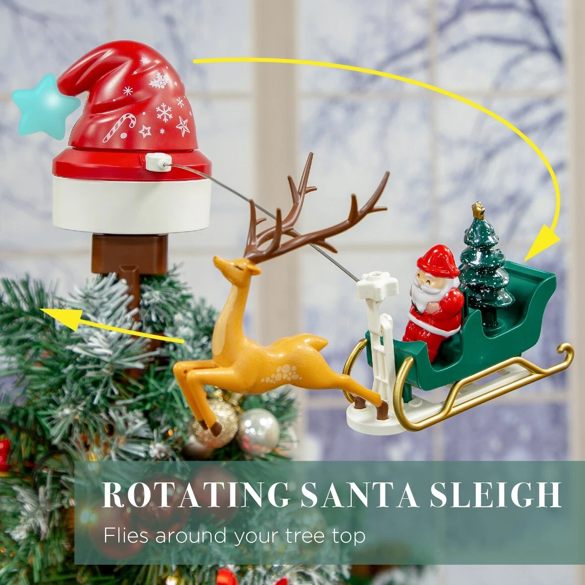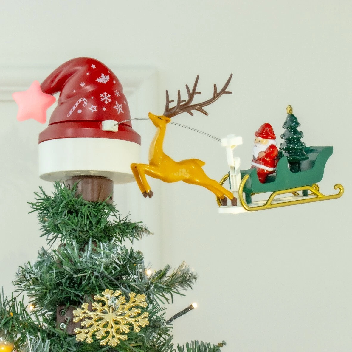 Add a festive touch to your Christmas tree with this rotating sleigh tree topper, measuring 38 x 21 x 29cm, for a captivating display.