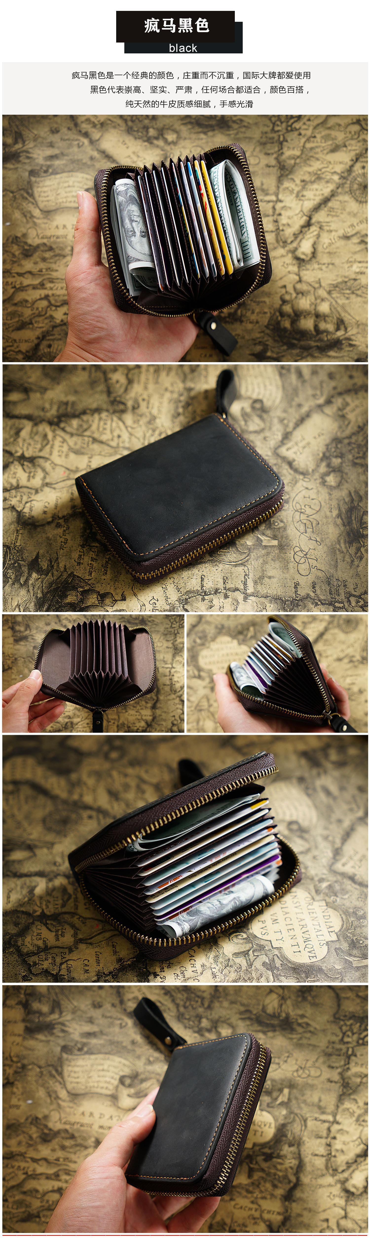Style: Card holder, Zipper Wallet, Coin Purse Material: genuine leather