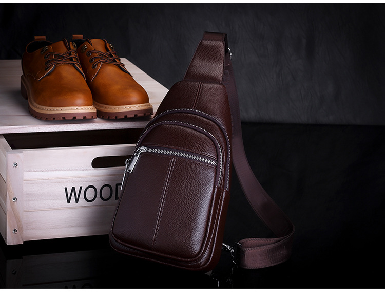 Style:Men's Crossbody bag,Sling backpack,shoulder bag Applicable scene: Travel,Hiking,Fashion,Party Material:Genuine Leather Material characteristics: First layer of leather Opening method: zipper Style: Casual Function: wear resistant Color:Black,Brown Size: 18cm * 30cm * 8cm / 7.08 inch * 11.81 inch * 3.14 inch Weight: 0.45kg