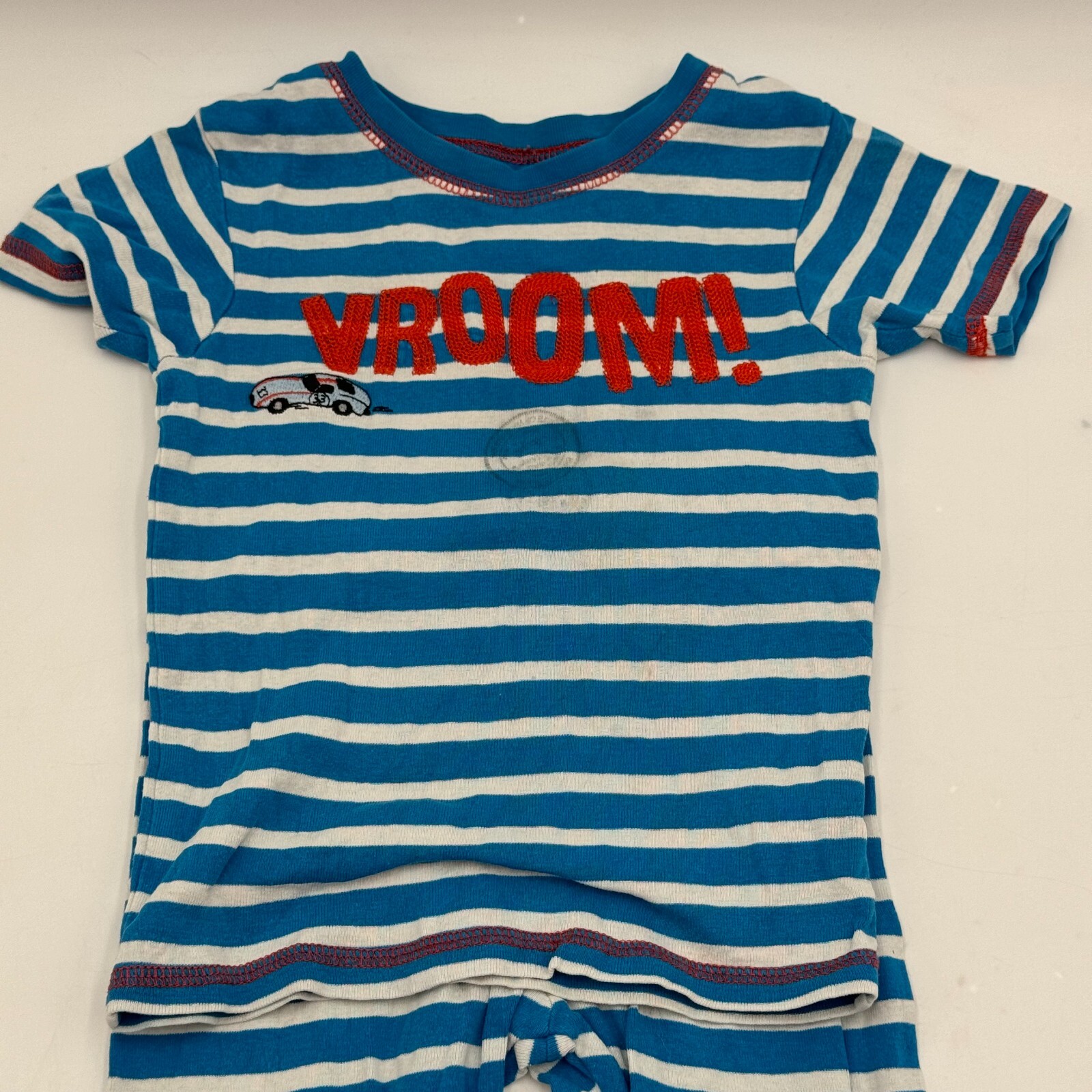 Get your little one ready for a wild ride with this pair of Carter's pajama sets! Featuring a fun vroom race car design in blue stripes and red checkers, these sets are perfect for any little one who loves the thrill of the race. Made with a comfortable blended fabric, these outfits are perfect for both baby boys and girls in size 5T.
