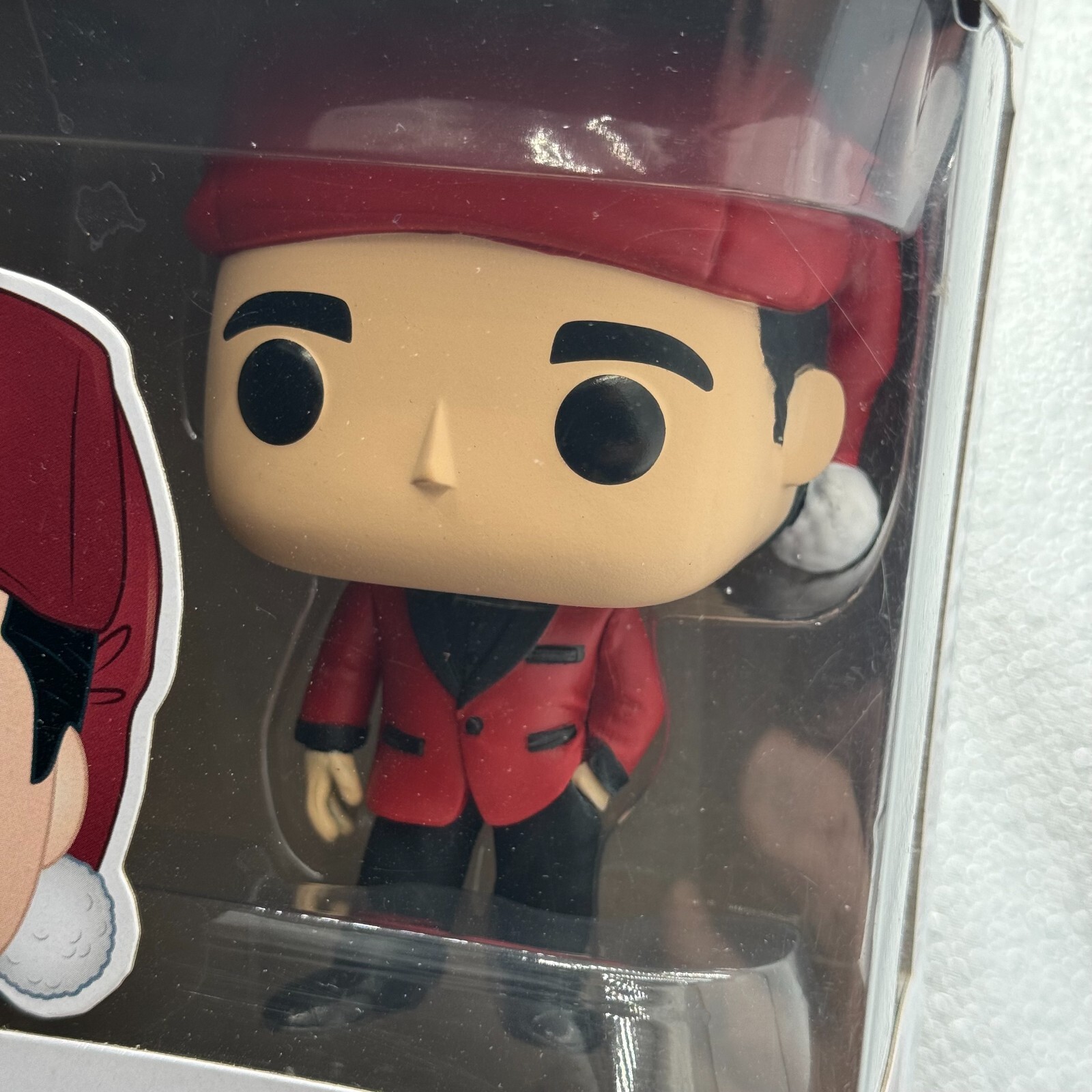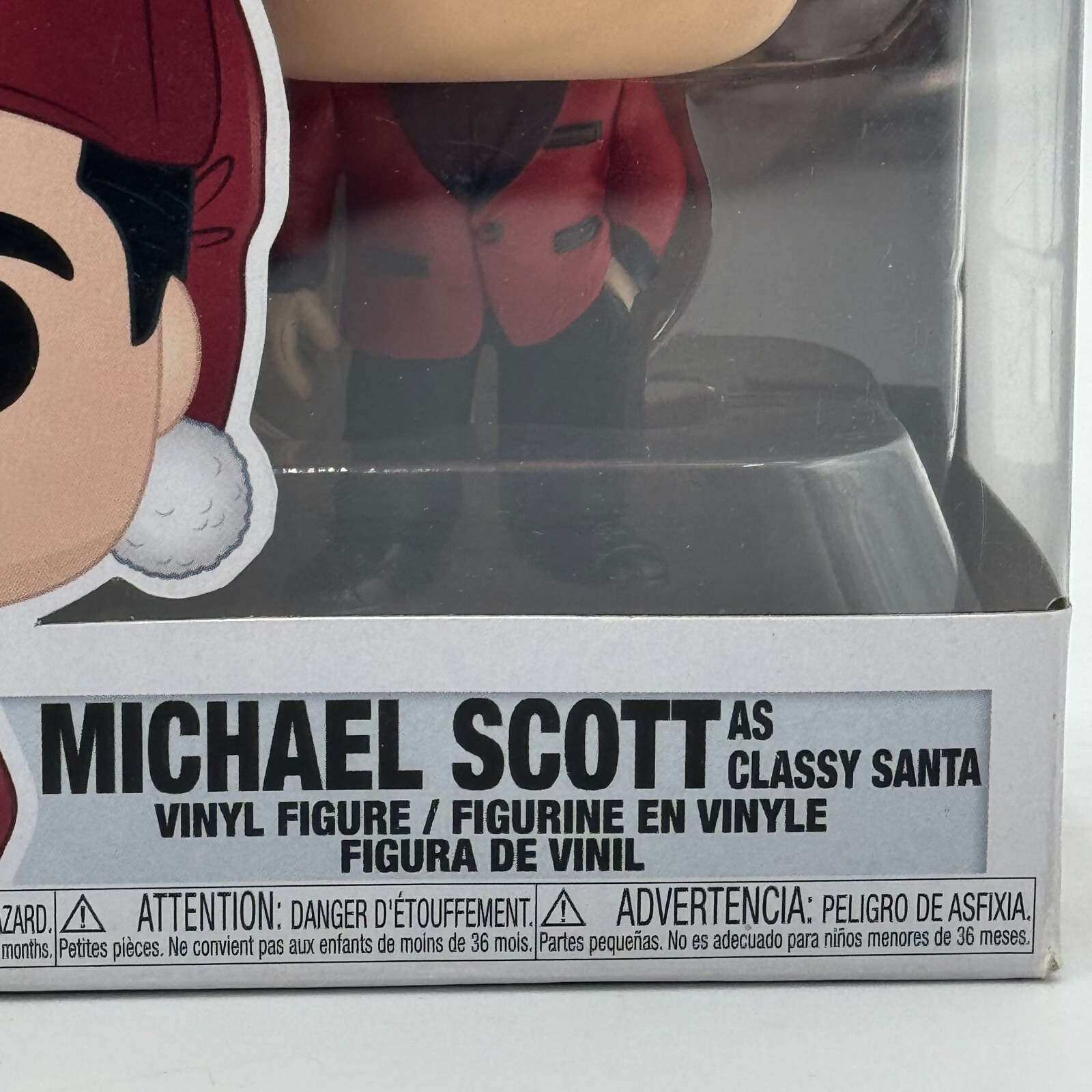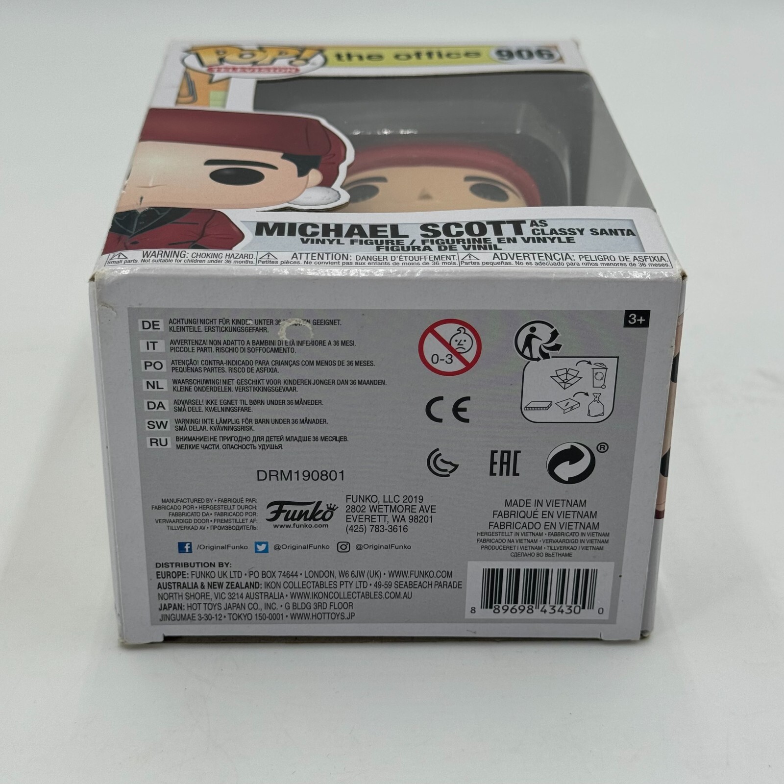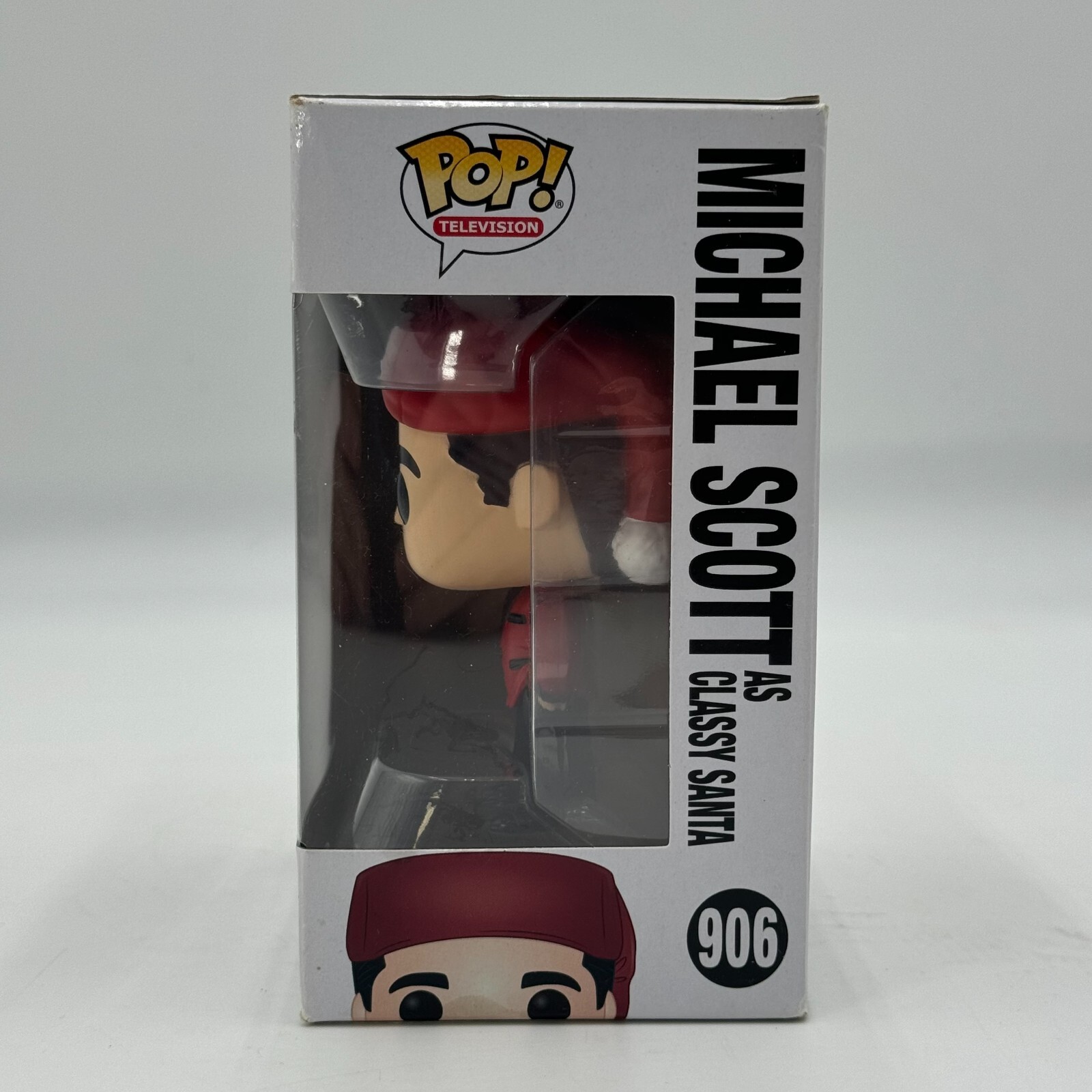 This Funko Pop! vinyl figure features Michael Scott from The Office, dressed as Classy Santa for the holidays. The figure stands at a standard size and comes in its original packaging, unopened with box number 906. This collectible is part of The Office Series 1 and is an exclusive item from Michaels.