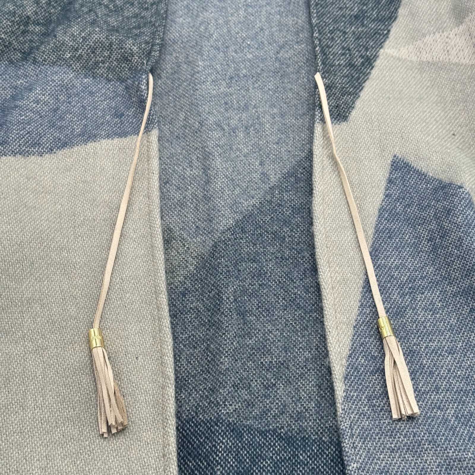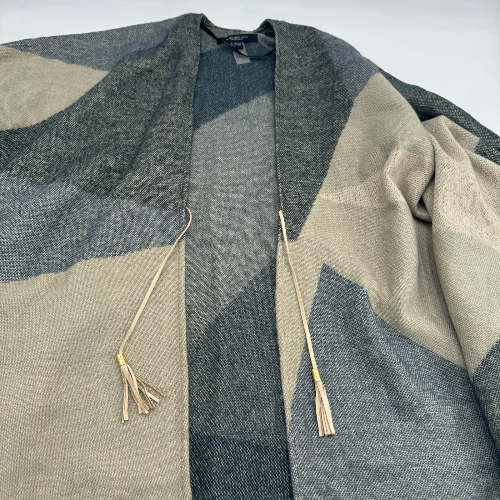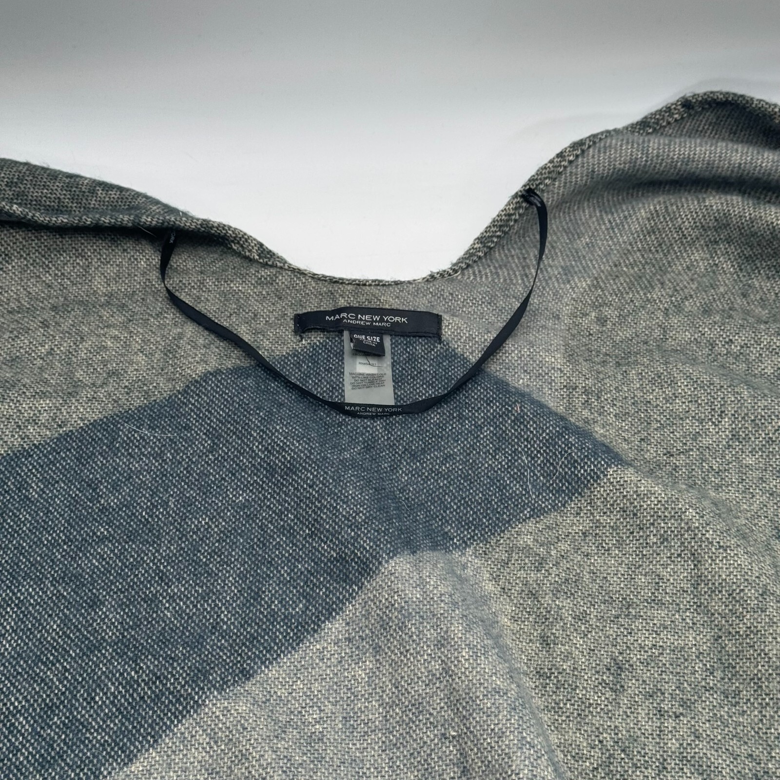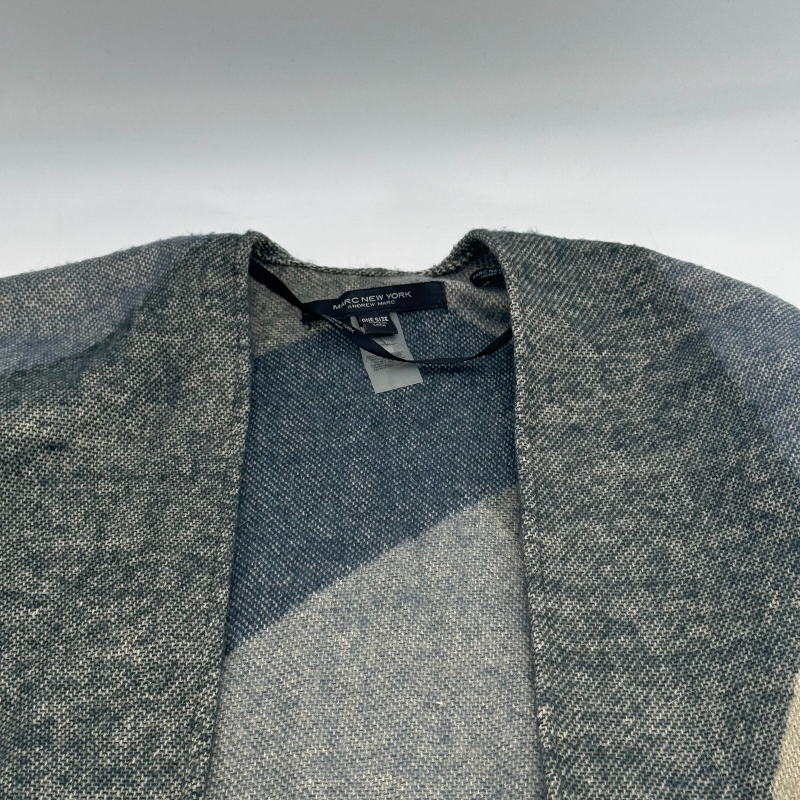 This is a trendy Marc New York poncho featuring a shawl collar, asymmetrical kimono sleeves, and a plaid pattern.