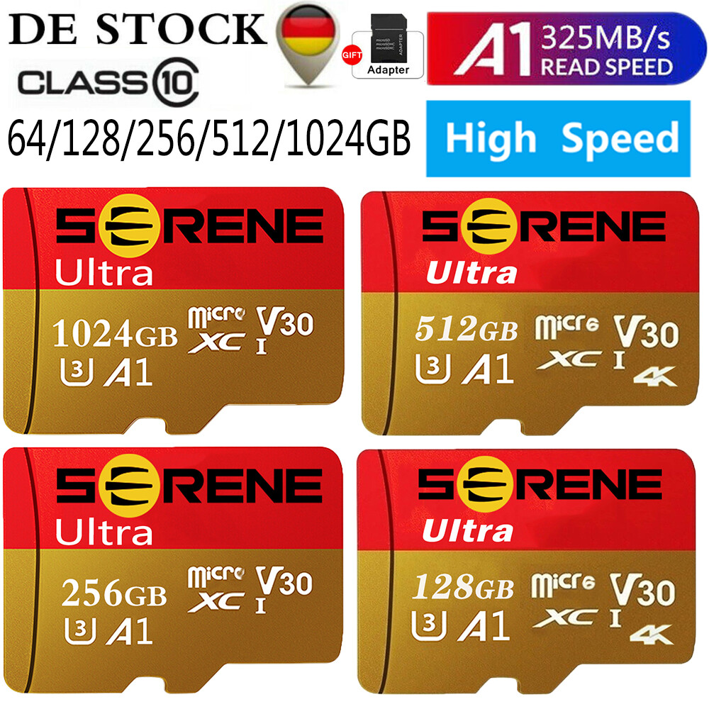 Micro SD 128 GB-1 TB Speicherkarte SDXC TF Ultra Class10 High Speed Fast Flash