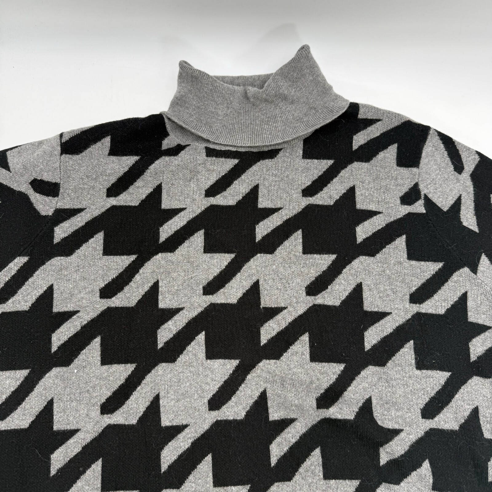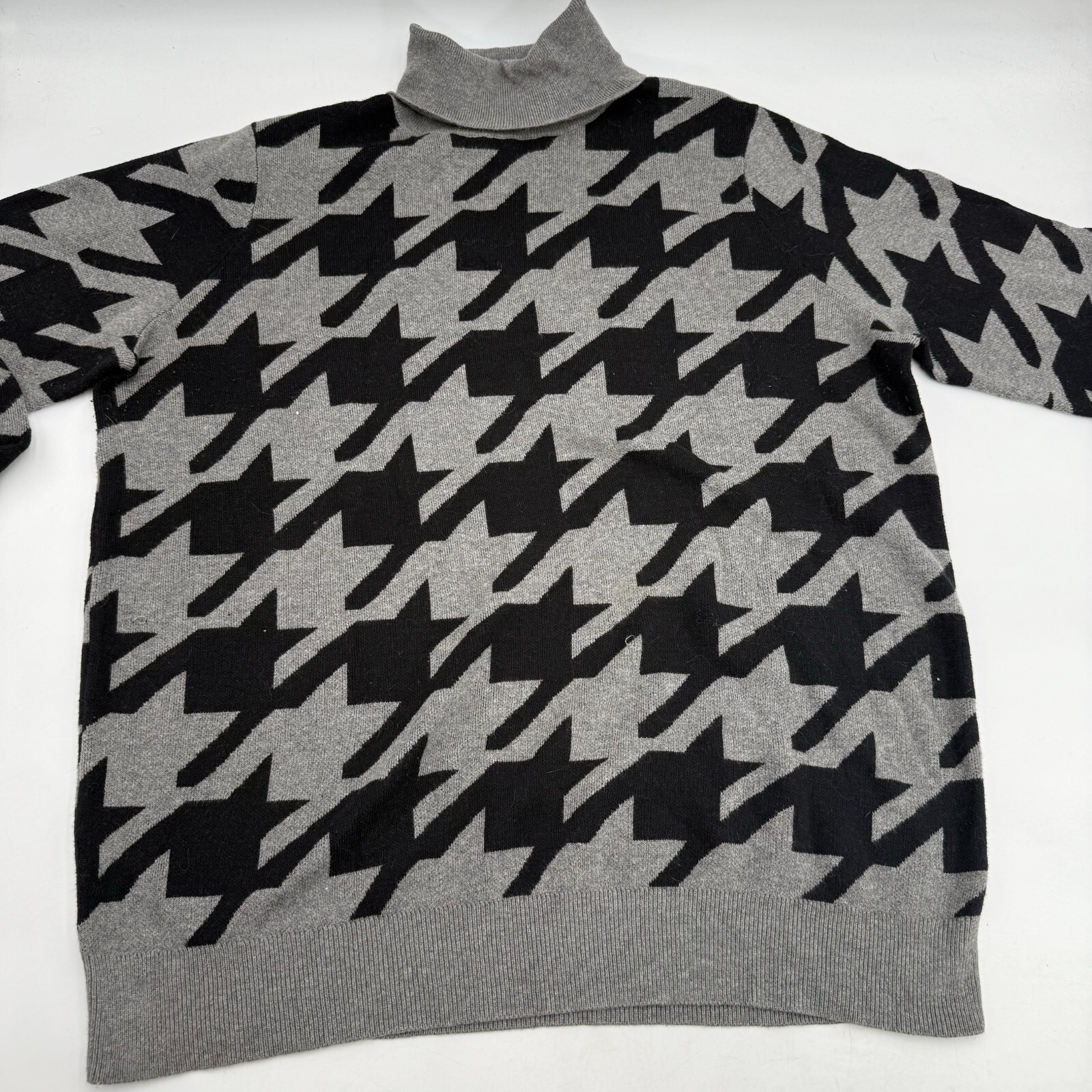 This Ann Taylor Factory women's sweater in size XL features a classic gray houndstooth pattern with a cozy turtleneck and long sleeves, making it a versatile choice for travel, casual outings, or workwear.