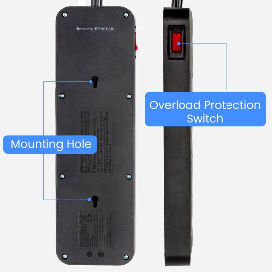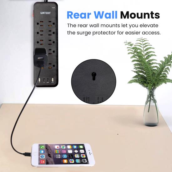 Mounting Options: Rear wall mounts provide flexible installation options, allowing you to keep the surge protector off the ground for easier access and a cleaner setup.