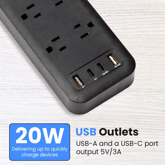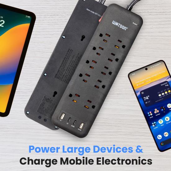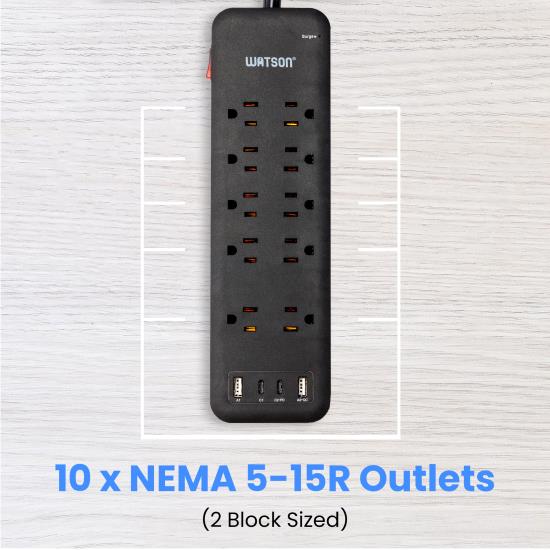 Watson 10-Outlet Surge Protector with 2 USB-C & 2 USB-A