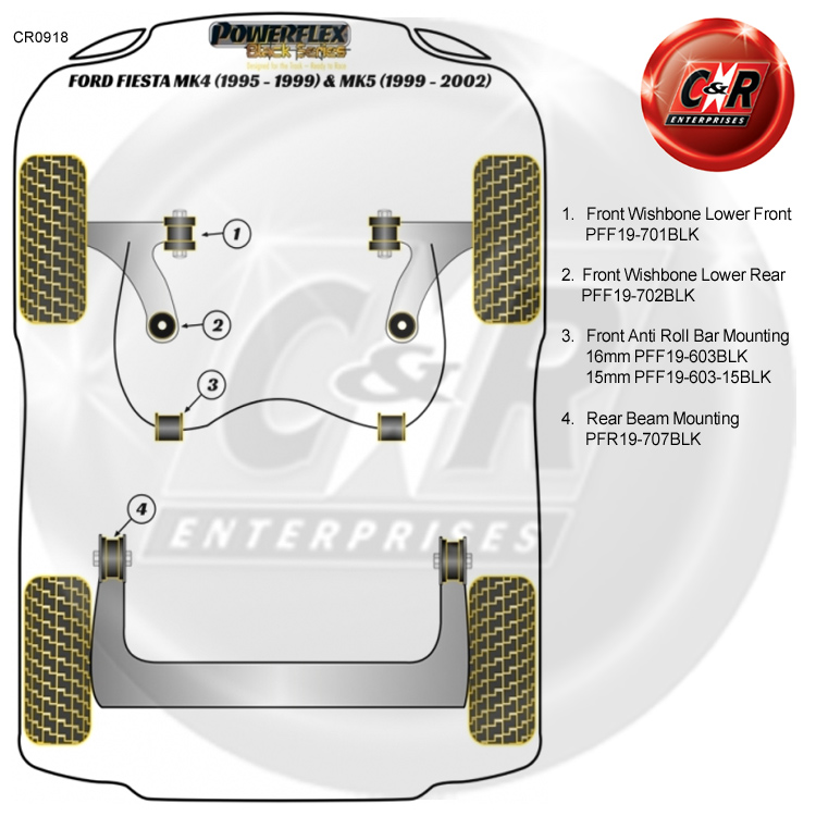 Powerflex schwarze vordere Querlenkerbuchsen unten vorne für: Ford Fiesta Mk5 (1999 - 2002)