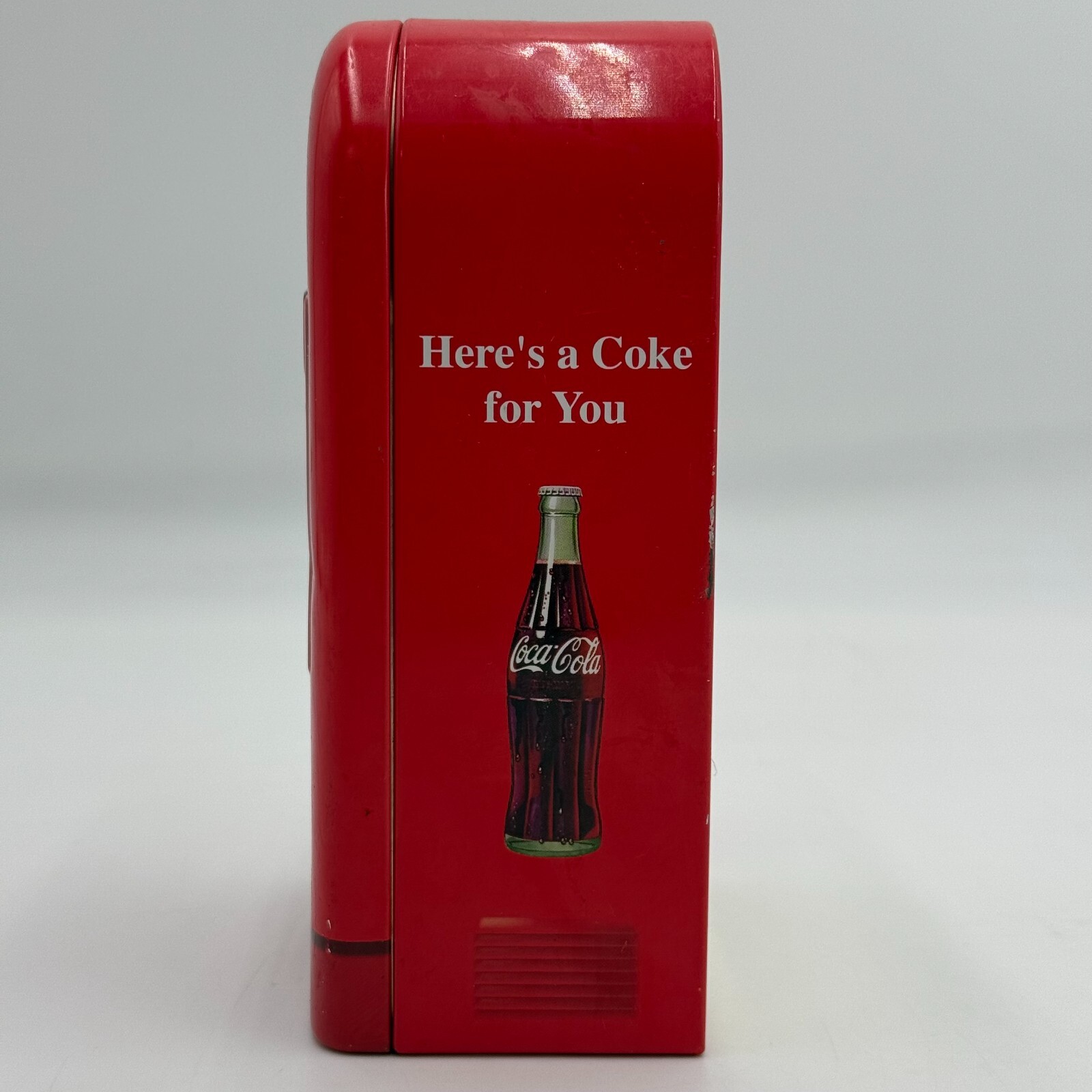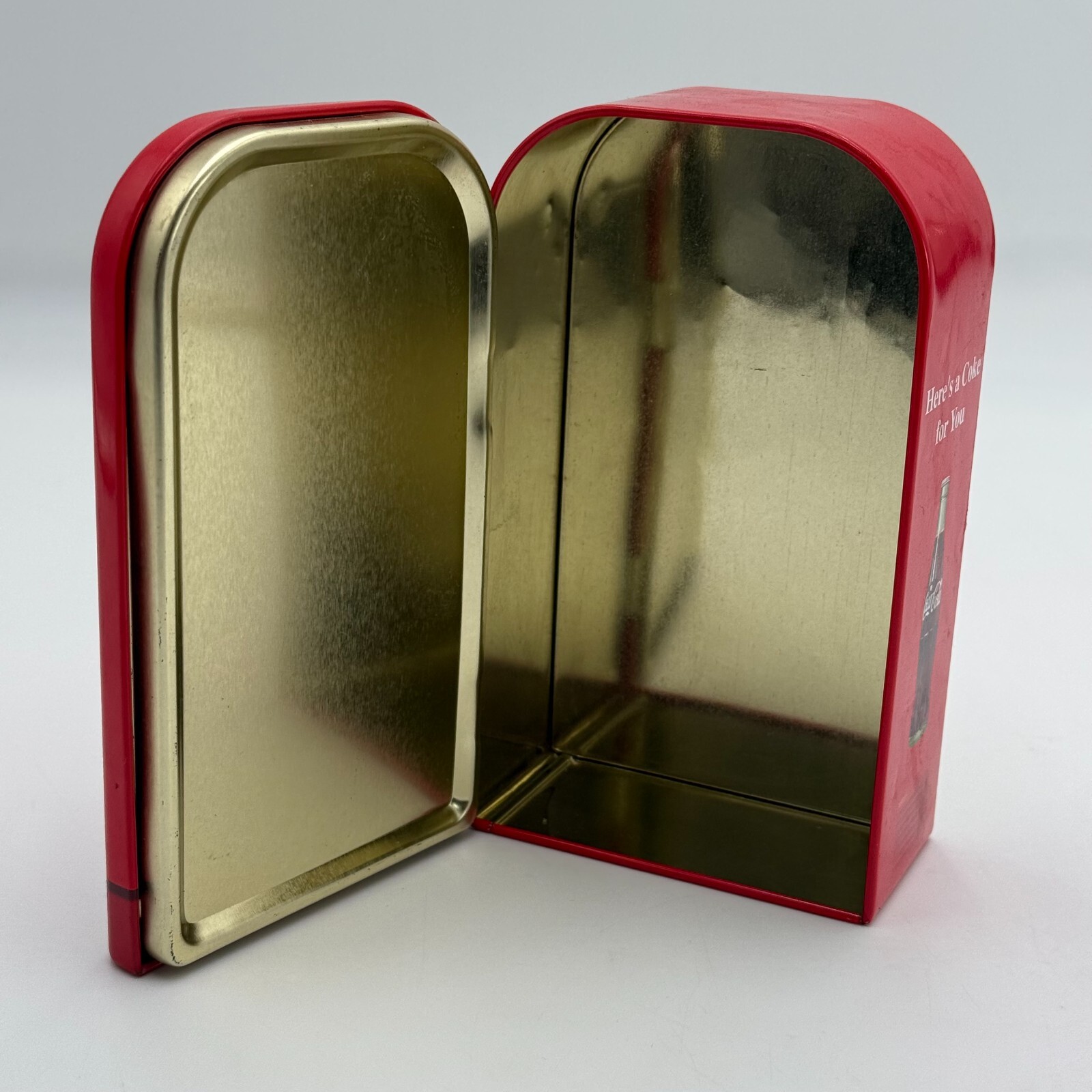 This vintage Coca-Cola tin is perfect for collectors and fans alike. Measuring 6.5x 2.5x 4 inches, it features a metal hinge and holds up to 12 bottles of ice-cold soda. The red color and classic Coca-Cola branding make it a great addition to any soda or advertising collection. The tin is an original piece and was manufactured in an unknown country or region. It is perfect for display or for practical use, and is sure to be a conversation starter.