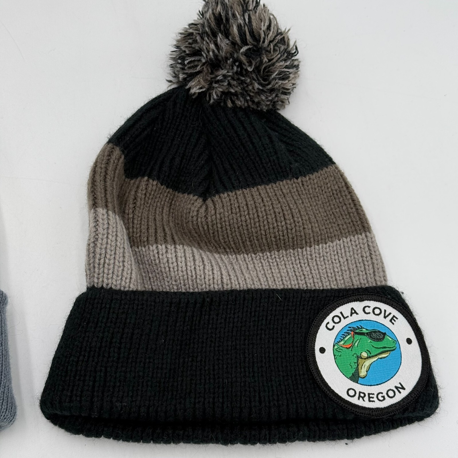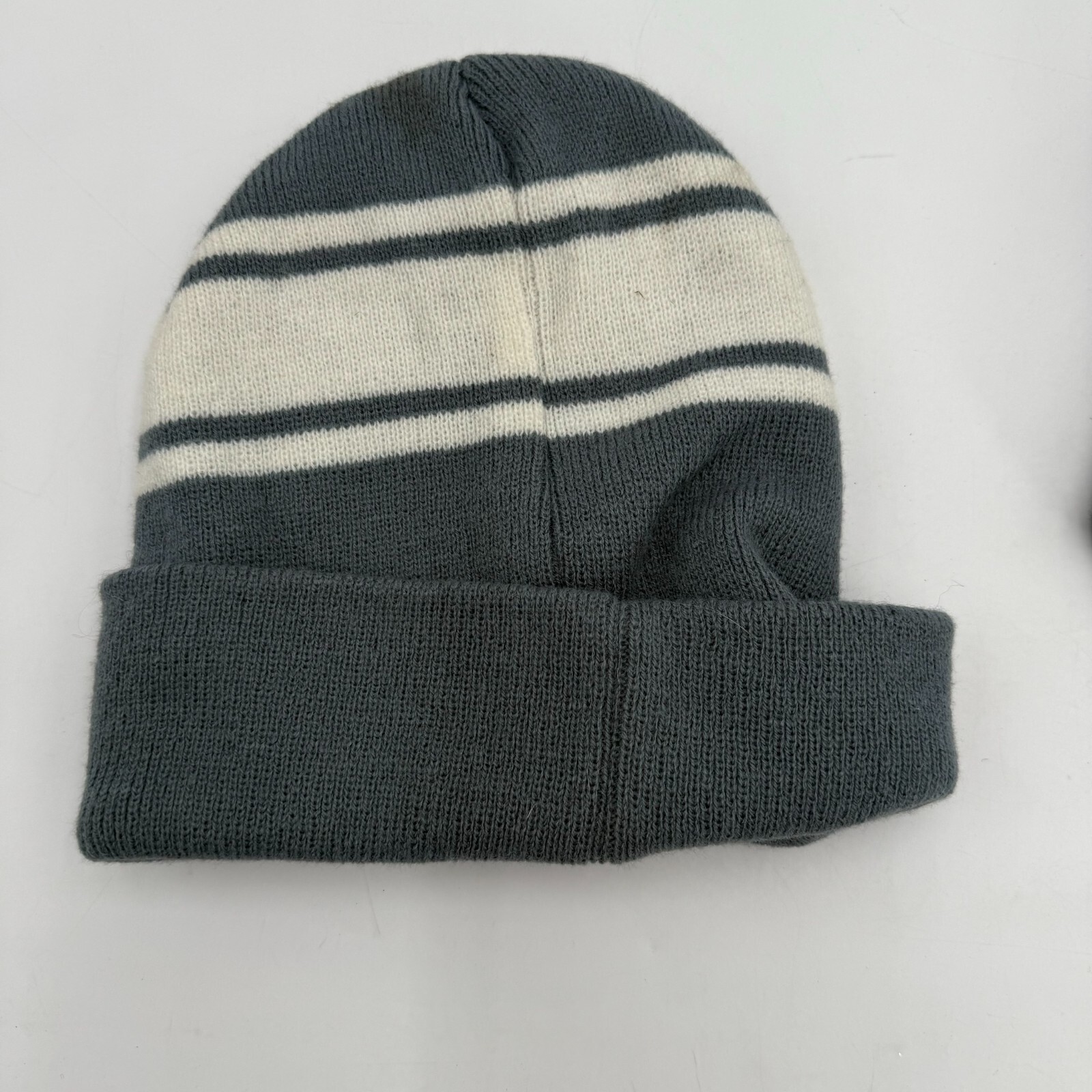 Stay warm and stylish this winter with this pair of striped beanie hats.