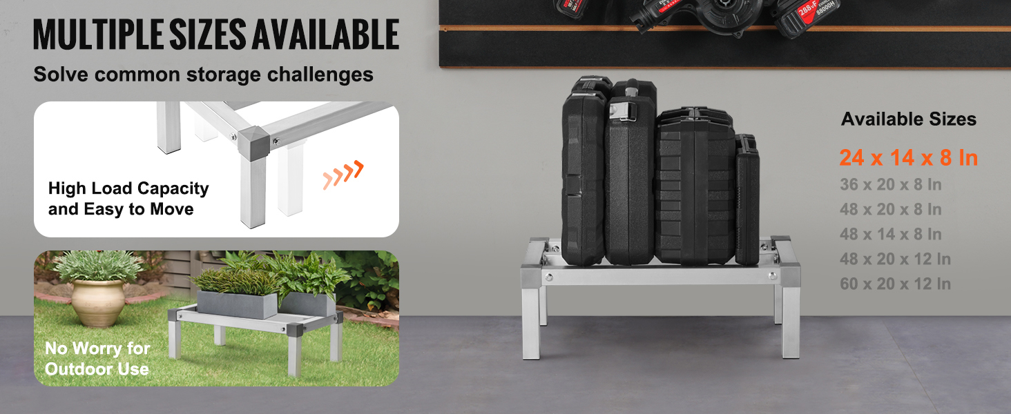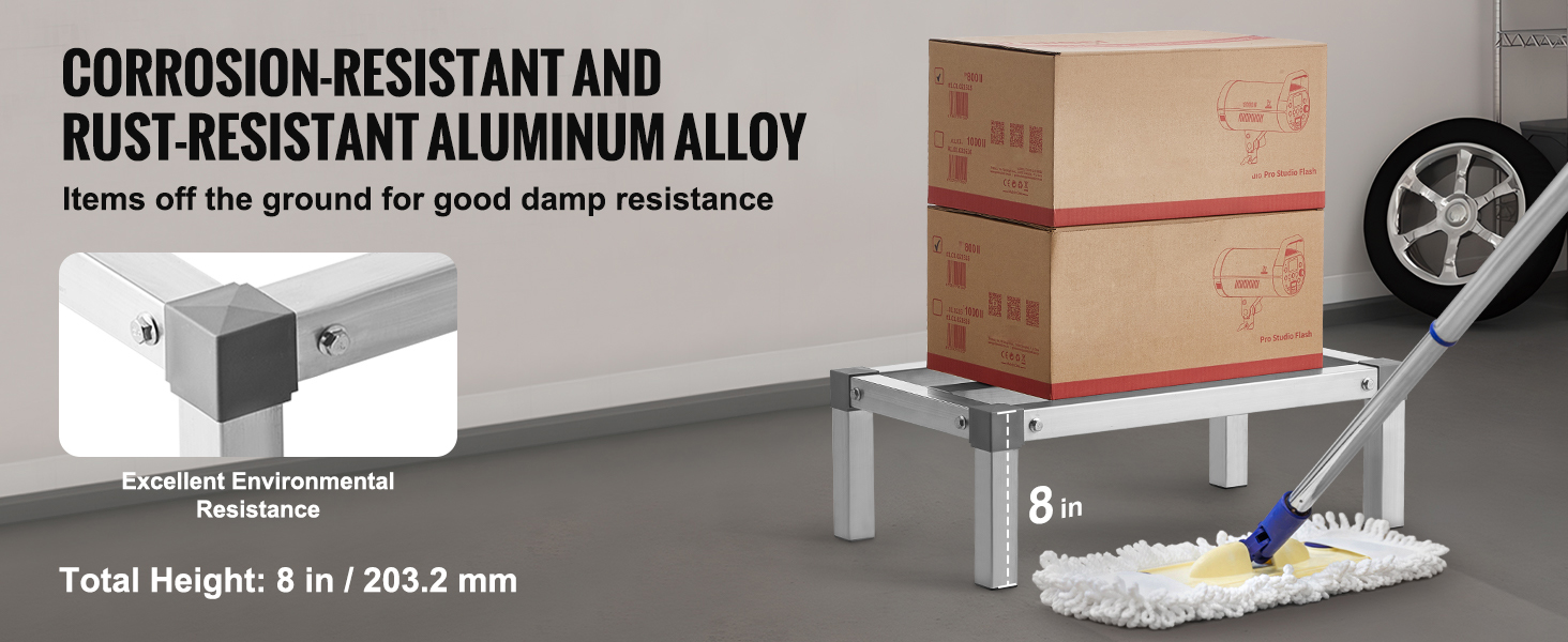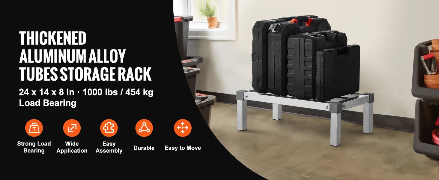 This aluminum storage rack supports up to 1000 lbs / 454 kg! It is built tough to handle heavy loads without bending or warping. It is long-lasting and reliable so that you can store confidently.