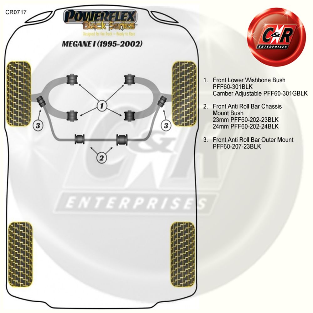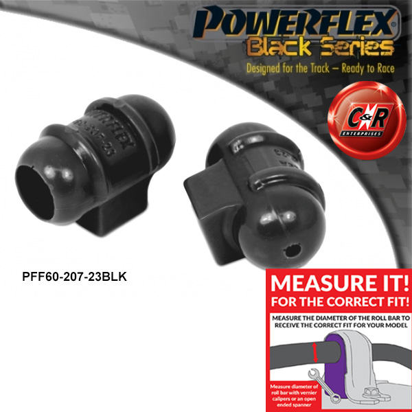 Diese Auflistung gilt für 2 schwarze Powerflex-Stabilisator-Außenhalterungen vorne mit der Teilenummer: PFF60-207-23BLK