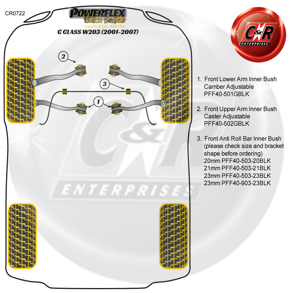 Diese Auflistung gilt für 2 schwarze Powerflex-Stabilisator-Innenbuchsen vorne 20 mm mit der Teilenummer: PFF40-503-20BLK