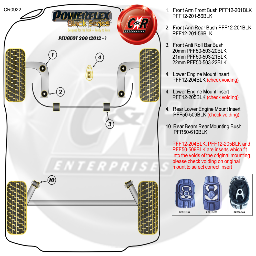 Powerflex schwarze hintere Montagebuchsen für den hinteren Träger für Peugeot 208 (2012–2019) PFR50–610BLK