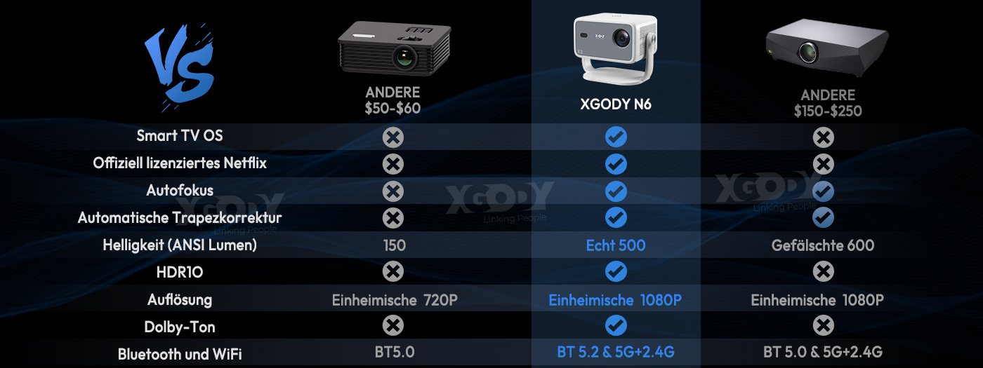 Die meisten Projektoren haben keine versiegelte optische Technologie, so dass ihre Linse dazu neigt, staubig zu werden, was zu schwarzen Flecken auf dem Bildschirm führt. Aber wir greifen dieses Problem an und verlängern die Lebensdauer des Projektors. Holen Sie sich einfach den XGODY Gimbal A6 voll versiegelten optischen Projektor und sagen Sie schwarzen Flecken und Bildverlust Lebewohl.