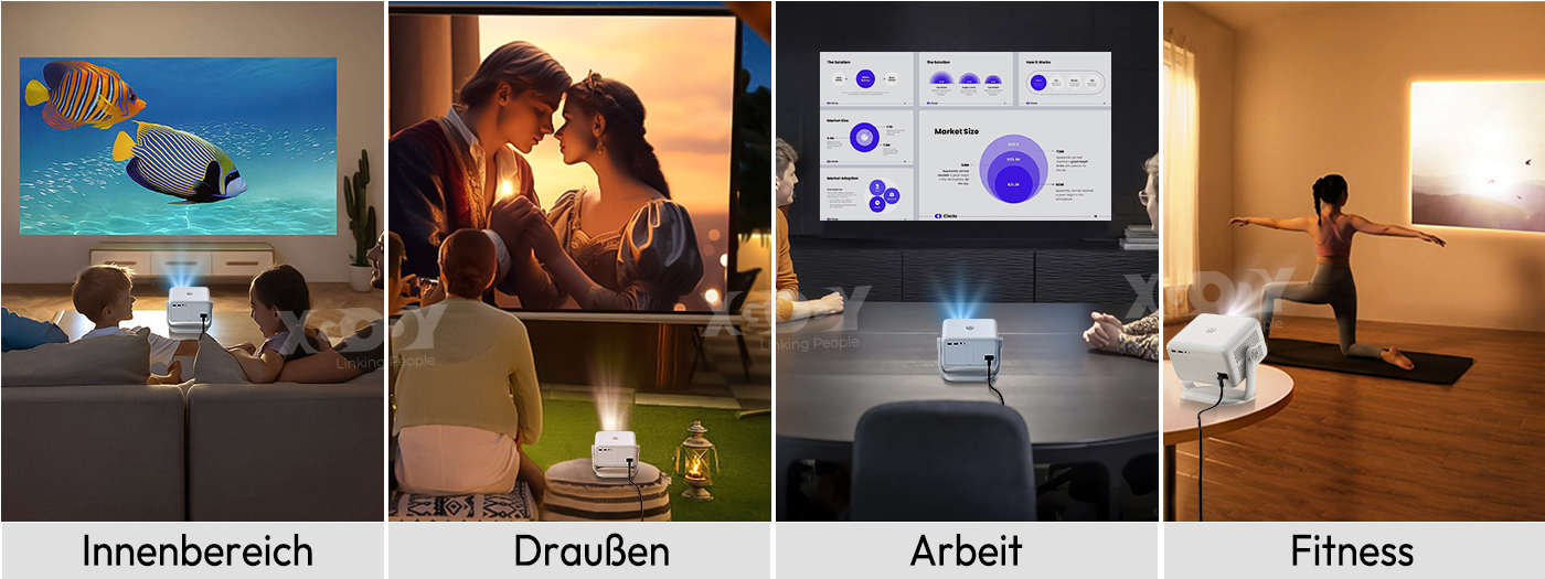 Ausgestattet mit HDMI-, Audio-, AV- und USB-Schnittstellen ist dieser echte 4K-Projektor kompatibel mit TV-Box, TV-Stick, PC, Laptop, Tablet, Smartphone, Chromecast, U Disk, PS4, Xbox, Kamera, Lautsprecher und mehr. So kann es Ihre meisten täglichen Anforderungen erfüllen - Heimkino, Videospiel, Party, Haus, Sportspiele.