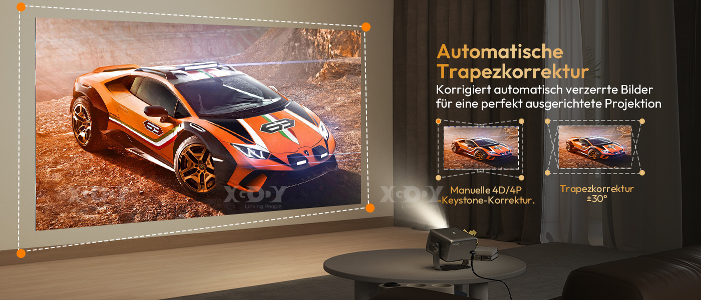 8. Trapezkorrektur: ±45° Vertikal&Horizontal 4P 4D Trapezkorrektur