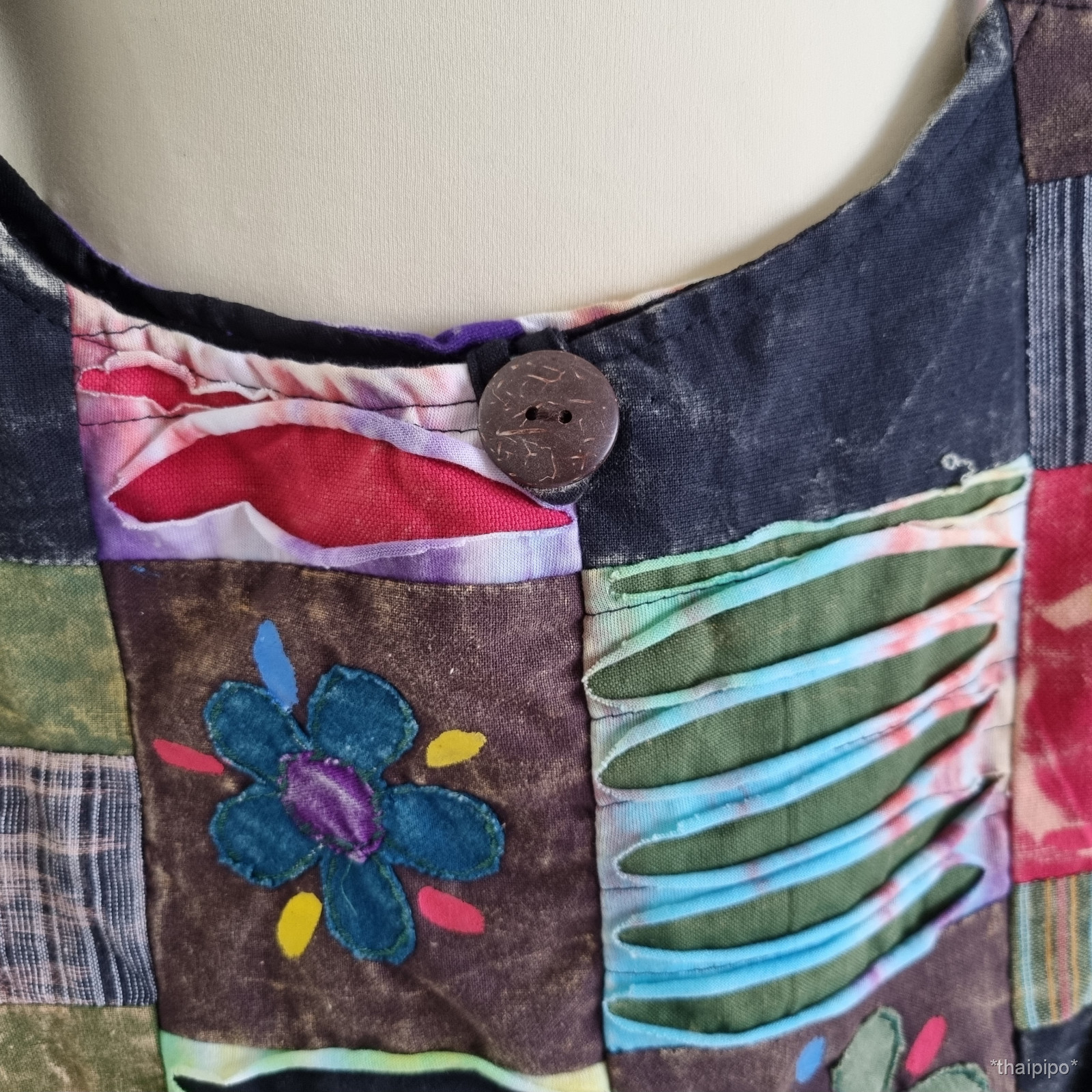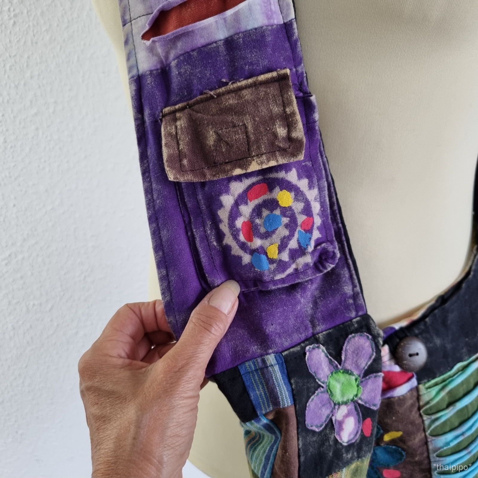 Alles schön bunt im Patchwork-Look aus verschiedenen Batik-Stoffen ..mit Blumen-Applikationen, gebatikten Mustern und aufgenähten Jerseystoff mit Farbverlauf.