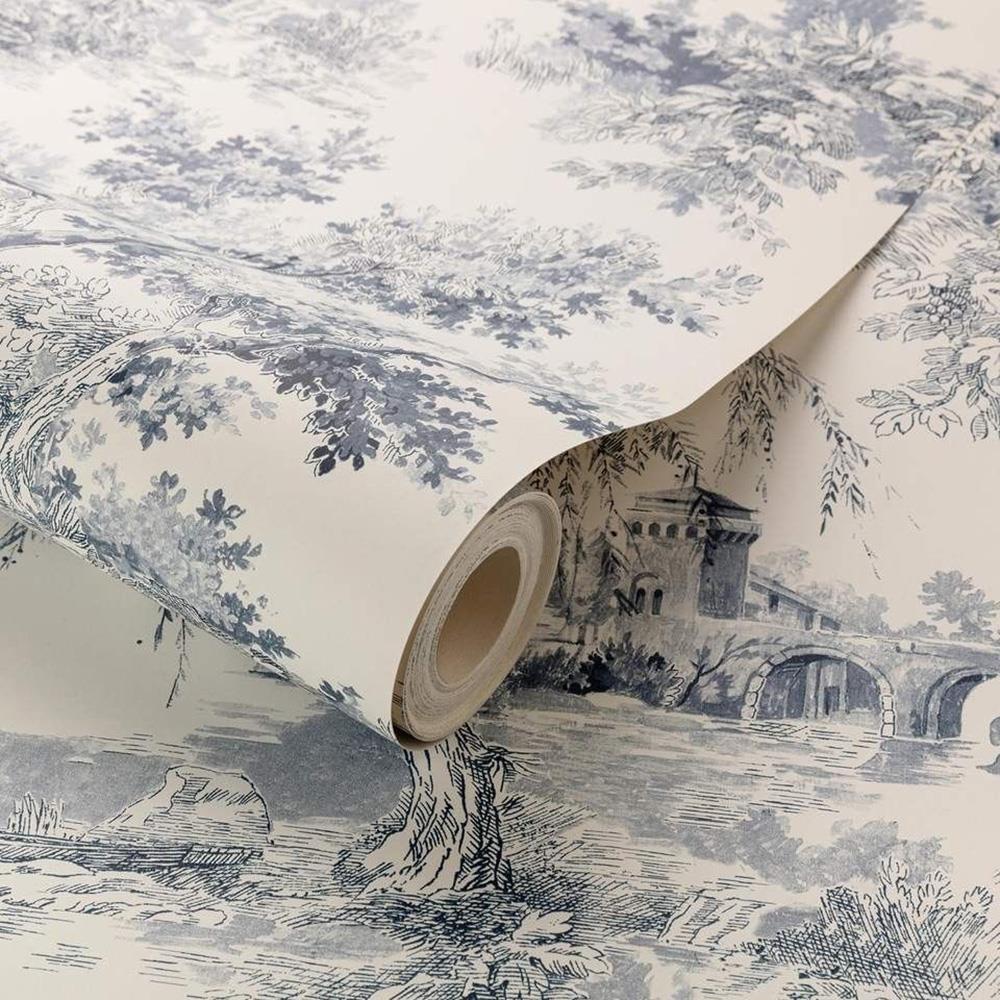 Add a classic feel to your home with this stunning Toile wallpaper. It features a gorgeous countryside scene in a blue colourway, set on a smooth paper background for a truly mesmerising wallcovering.