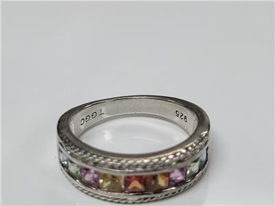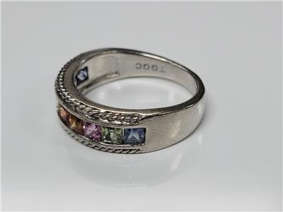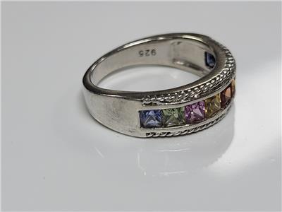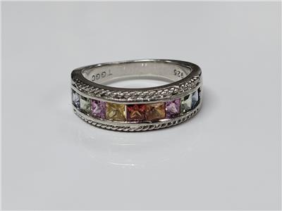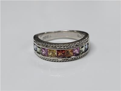 Vintage Sterling Silver Rainbow Stones Ring