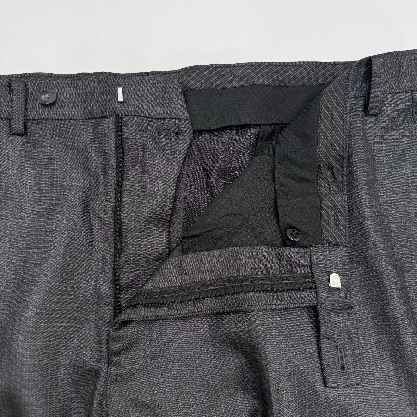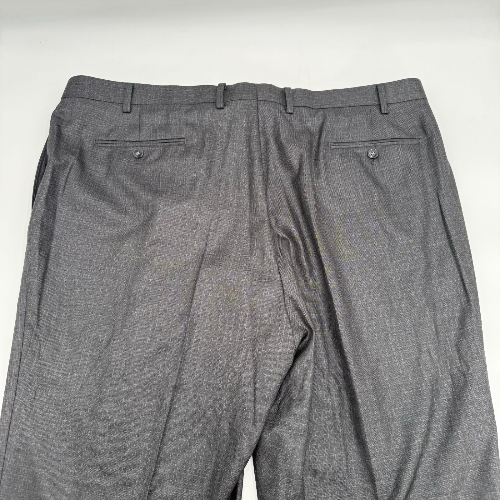 The dark grey suit slacks are perfect for any formal occasion. They feature a regular fit and a solid pattern. These pants are designed for big and tall men, with a size of 44 inches and an inseam of 38 inches.