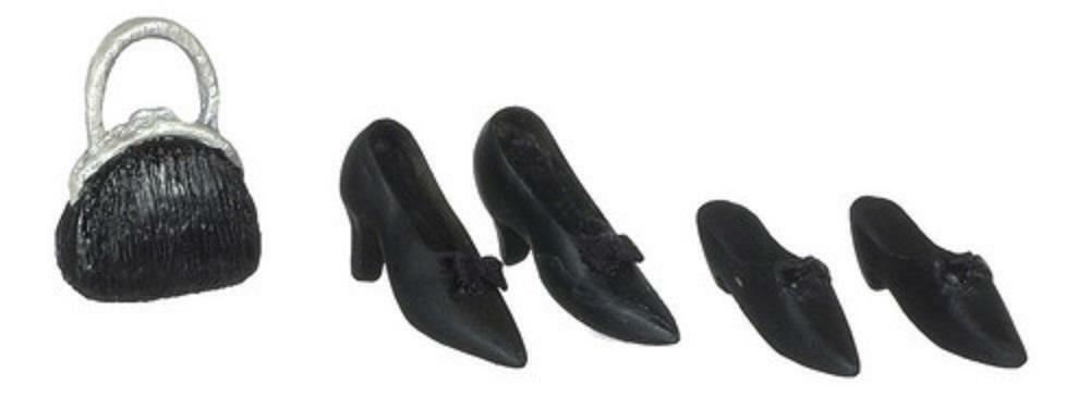 Échelle 1:12 - Résine - 2 paires de chaussures et un sac à main - Longueur approximative de la chaussure 20 mm = 13/16 pouces