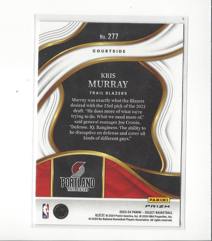 2023-24 Select Prizms Orange Flash #277 Kris Murray RC Rookie Blazers