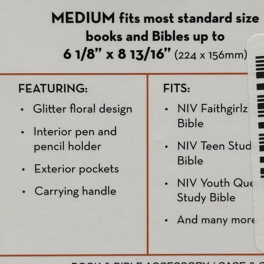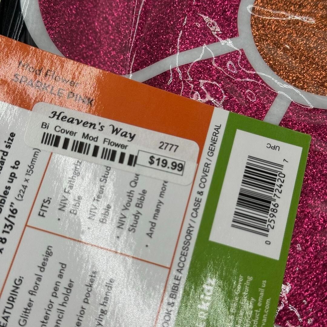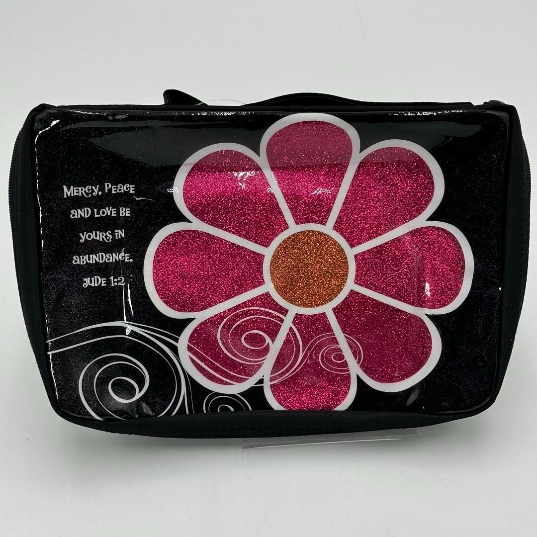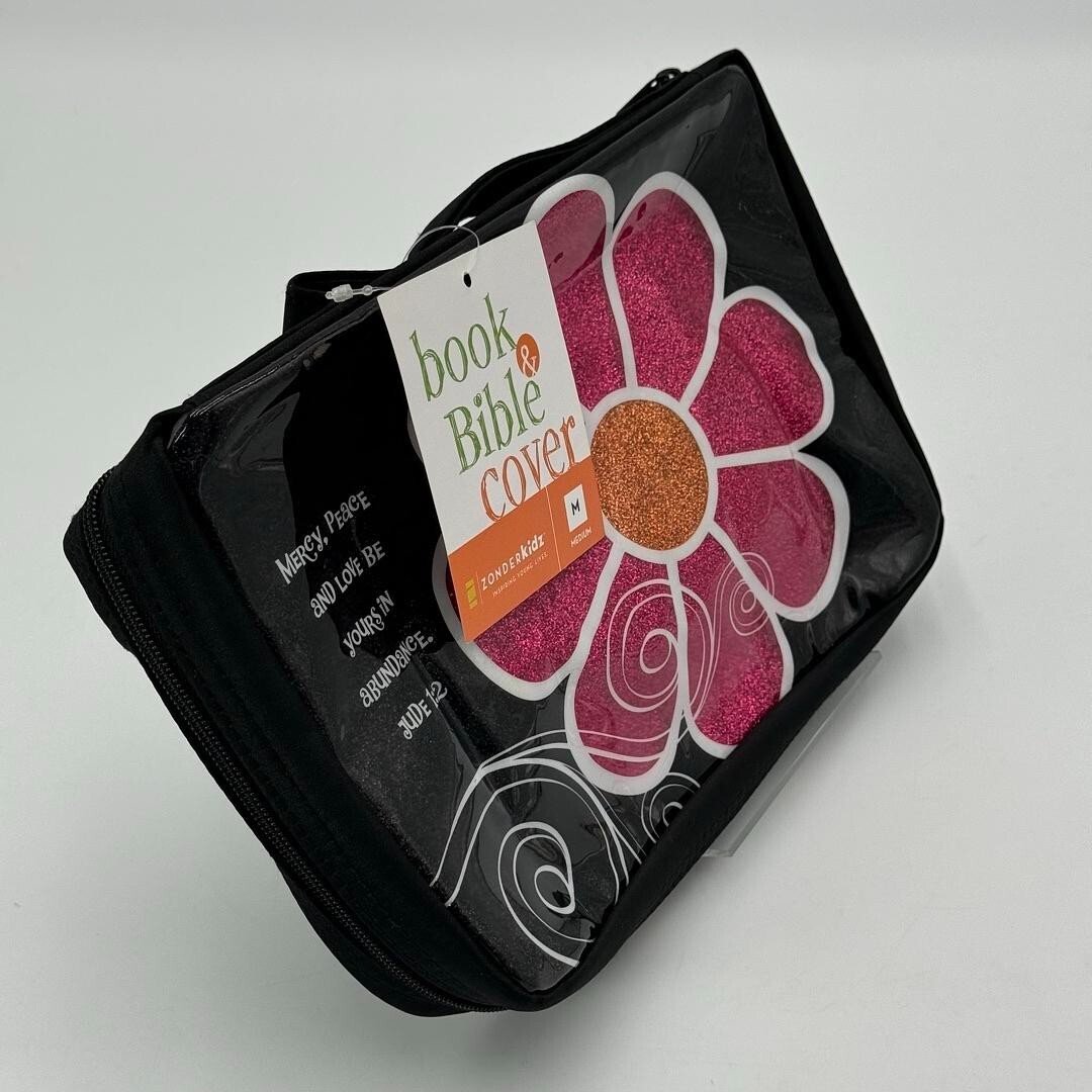 Zonderkidz Black Canvas Pink Glitter Flower Study Bible Book Cover 6 x 9 NWT